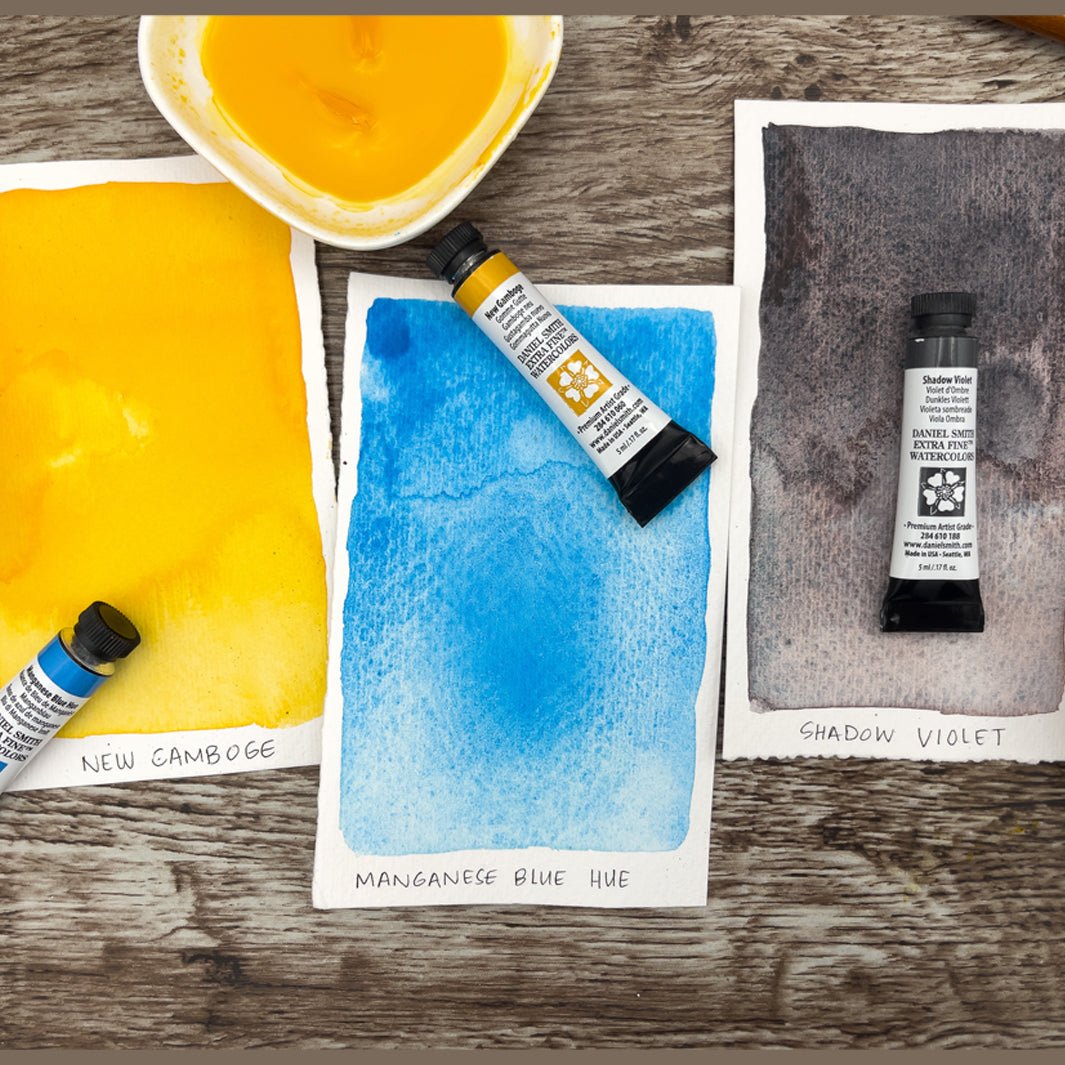 Este set incluye 3 tubos de 5ml en los colores New Gamboge, Manganese Blue Hue y Shadow Violet.