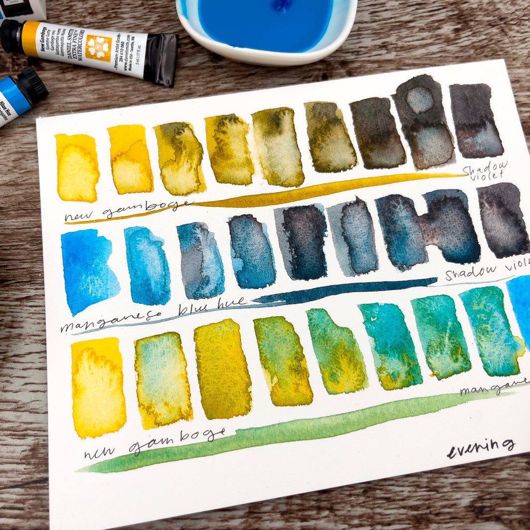 El set Evening Glow te permitirá capturar la última luz del día con esta paleta de ensueño y poética: el amarillo dorado New Gamboge refleja un sol que se desvanece, el azul Manganese Blue Hue evoca cielos refrescantes y el morado Shadow Violet aporta sombras suaves y misteriosas. Un trío perfecto para escenas crepusculares, transiciones suaves y pinturas emotivas y melancólicas.
