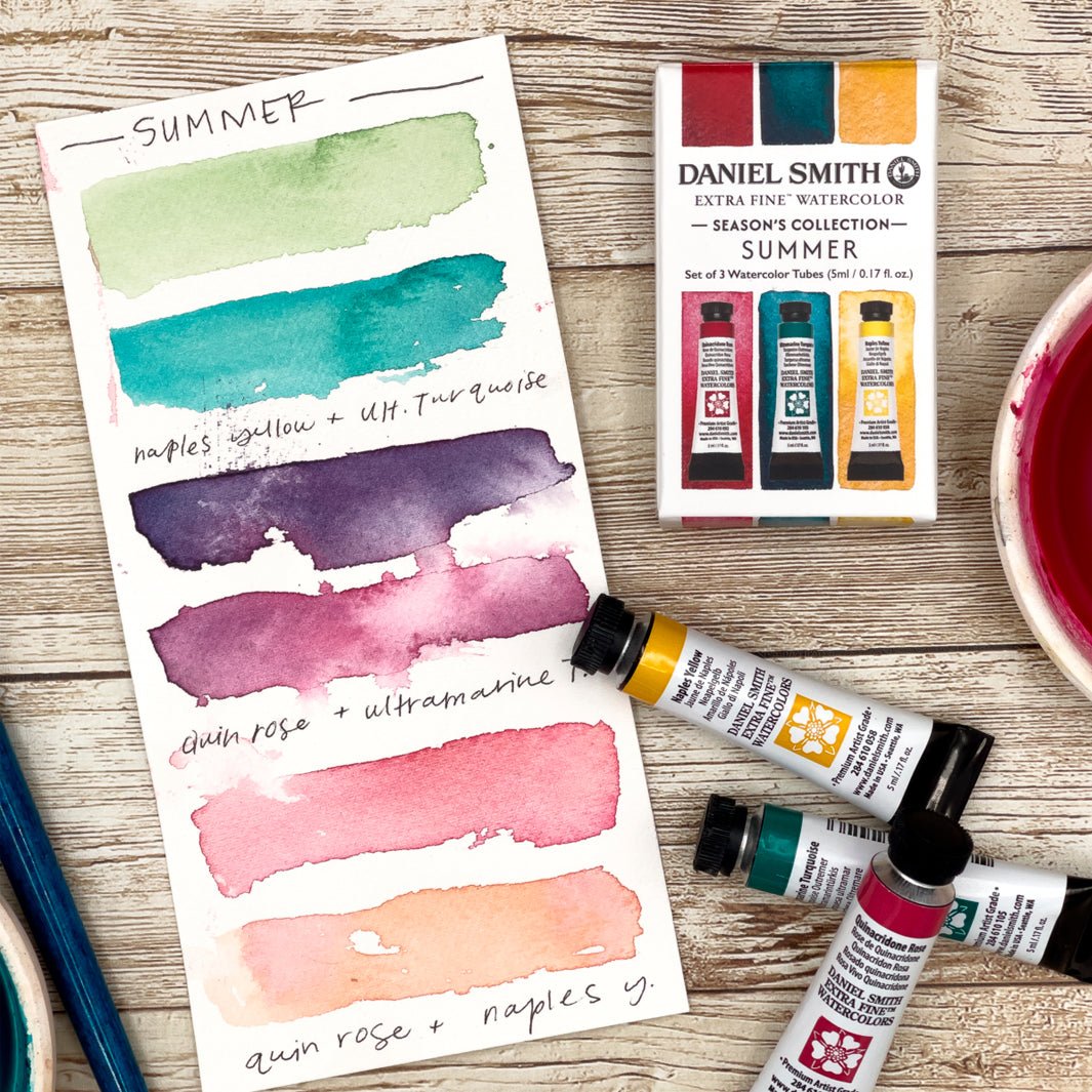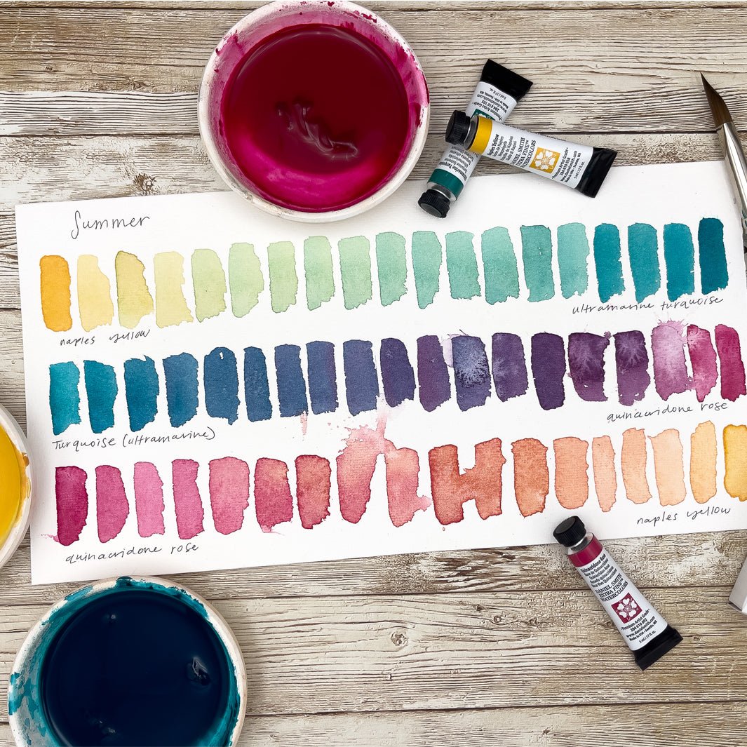 Con el set Summer, disfruta de los cálidos y brillantes colores del verano: el luminoso Rosa Quinacridona y el refrescante Turquesa Ultramar se equilibran a la perfección con el cremoso Amarillo Nápoles, capturando la esencia de los días soleados, las aguas tropicales y el despreocupado sol del verano.