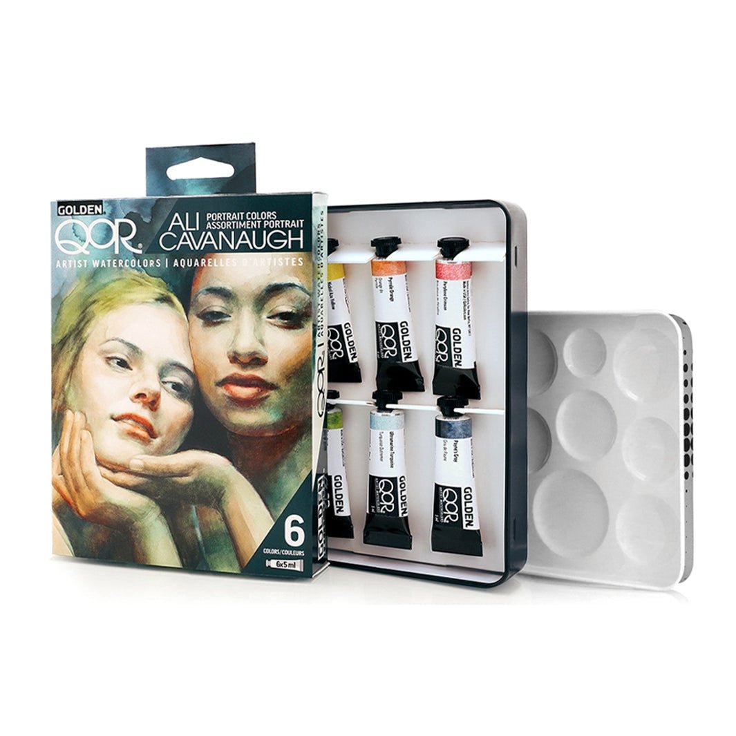 El set de acuarelas Golden QoR Retrato es una colaboración con Ali Cavanaugh, una acuarelista estadounidense conocida (y premiada) por sus retratos impactantes, su manejo de transparencias y por su forma tan particular de mezclar el realismo con el expresionismo.