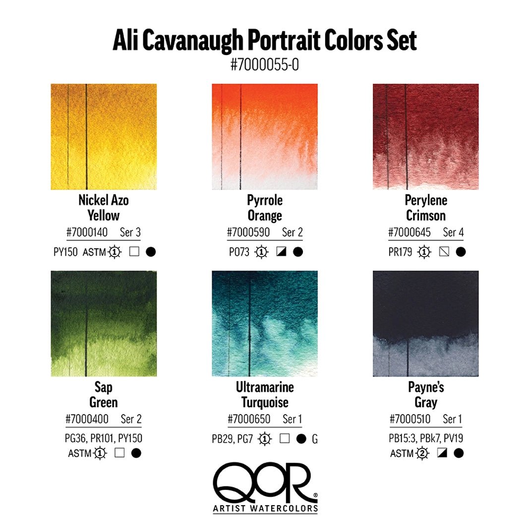 Este estuche te ofrece una gama elegida por la misma Ali Cavanaugh: níquel amarillo azo, naranja pirrolo, carmesí de perileno, verde vejiga, turquesa de ultramar y gris de Payne. ¡Aquí te contamos cómo sacarles provecho!