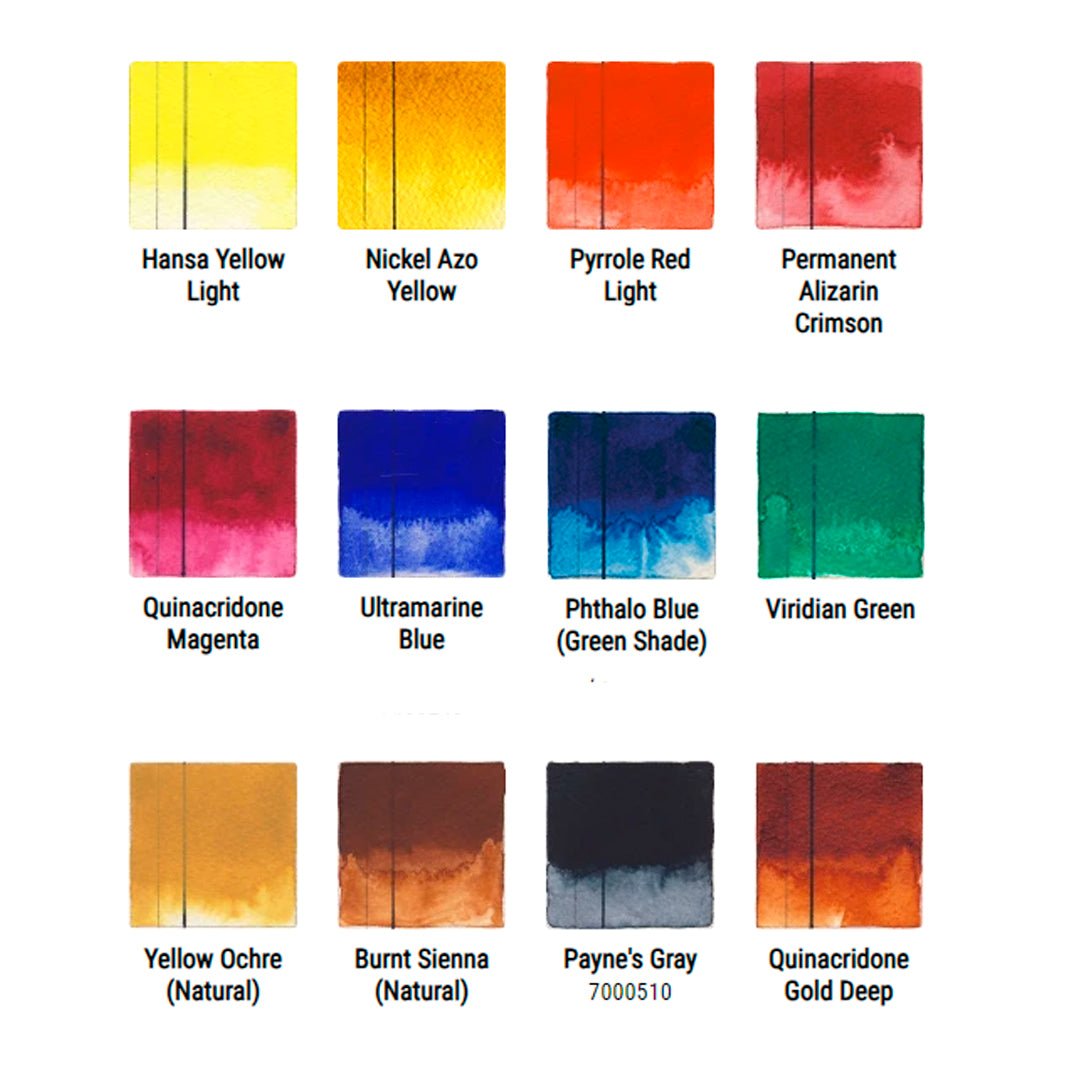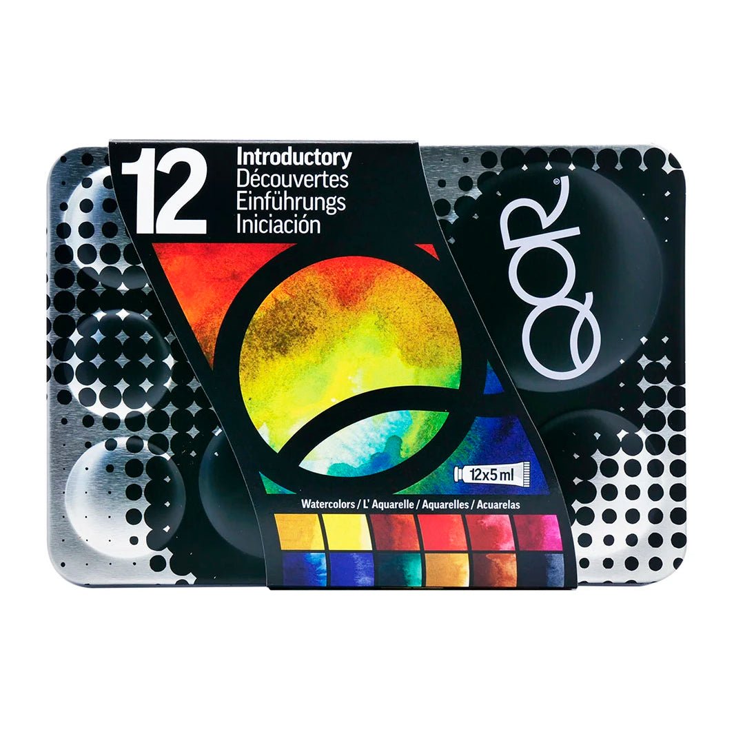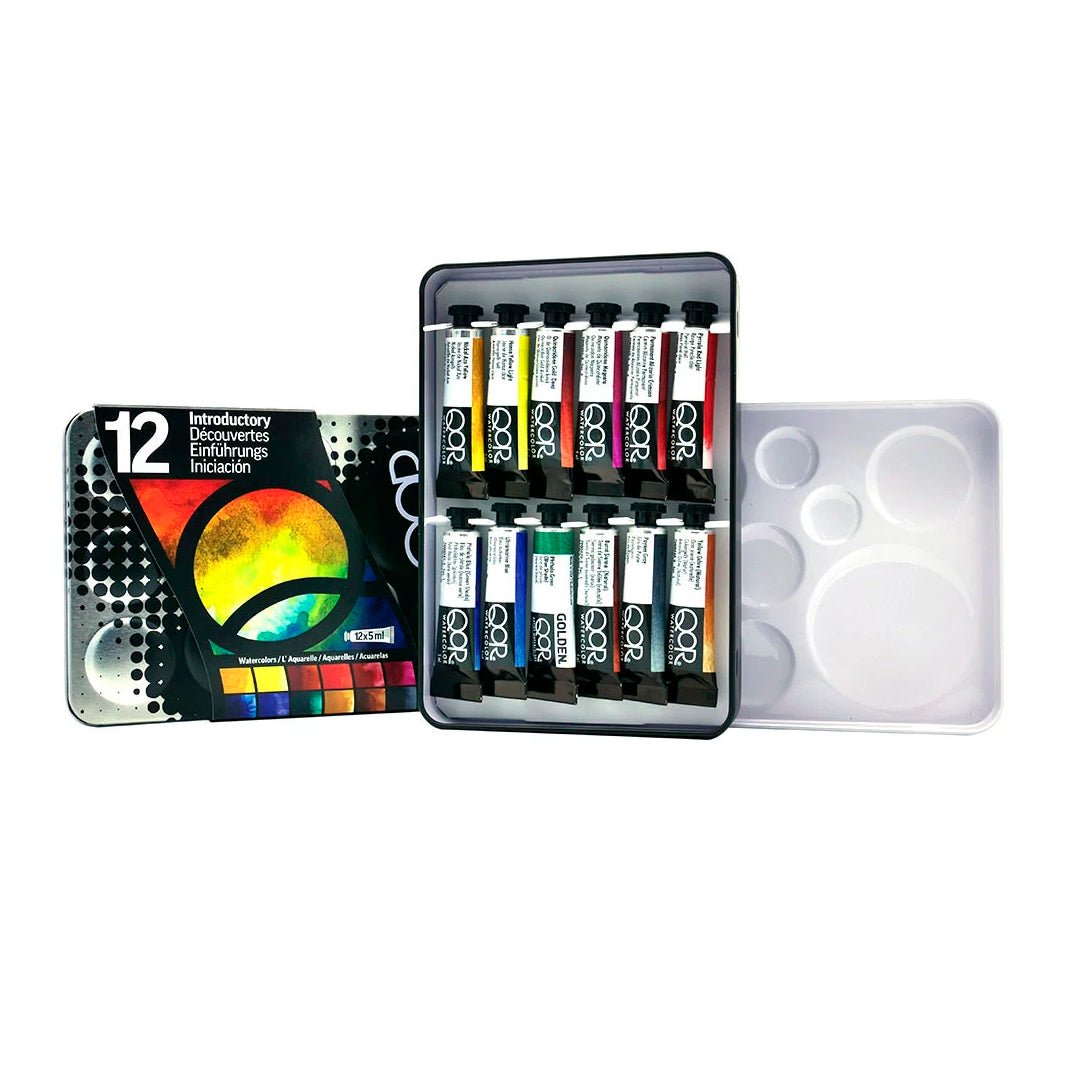 Este es el set QoR Iniciación con 12 (Introductory). Incluye 12 tubos de 5ml en una genial gama de tonos primarios, secundarios y tierras: Amarillo Hansa Claro, Amarillo de Níquel Azo, Rojo Pirrol Claro, Carmesí de Alizarina Permanente, Magenta de Quinacridona, Azul Ultramar, Azul Ftalo (tono verde), Verde Viridián, Amarillo Ocre, Siena Tostada, Gris de Payne y Oro de Quinacridona Oscuro.