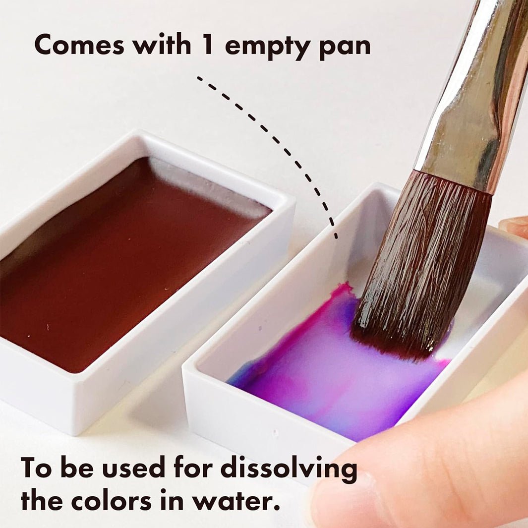 Las acuarelas Gansai Tambi Sumi Colors incluyen 5 colores: Rojo Aurora, Rosa Aurora, Naranja Aurora, Azul Aurora y Violeta Aurora. Además, traen una pastilla vacía para que puedas mezclarlas entre sí.