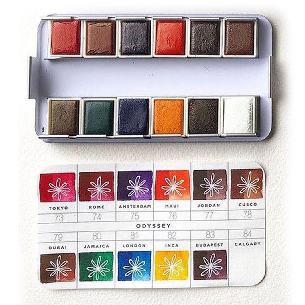 Este es el set Odyssey de la colección de acuarelas Confections de Art Philosophy (Prima Marketing). Los colores de este set son profundos, geniales para figurines de moda, joyería e ilustración floral. ¡Es un estuche perfecto para completar tu colección de acuarelas!