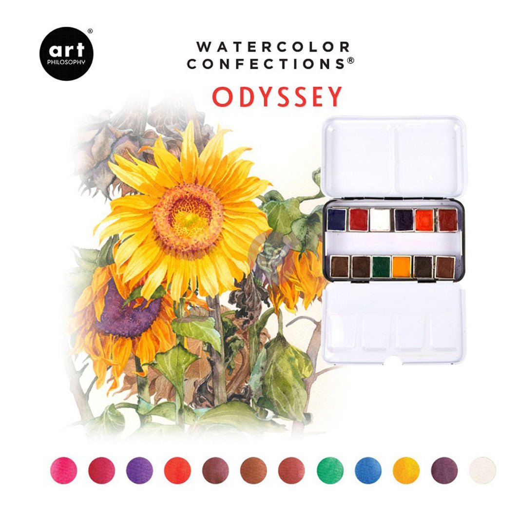 Las Art Philosophy Confections son acuarelas semiprofesionales de excelente calidad, súper pigmentadas y portátiles. Todos los colores son brillantes e intensos, perfectos para artistas, ilustradores y diseñadores.
