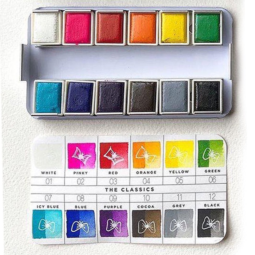 Este es el set The Classics de la colección de acuarelas Confections de Art Philosophy (Prima Marketing). Los colores de este set fueron elegidos para ofrecerte los tonos básicos que necesitas para pintar. ¡Es un estuche perfecto para iniciar o completar tu colección de acuarelas! Ruma-tip: mezcla los colores amarillo, rojo y morado en diferentes proporciones para crear tonos piel.