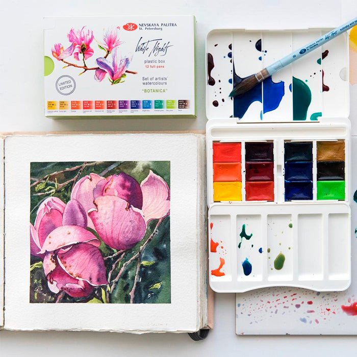 Este bello estuche de acuarelas White Nights Botánica trae una increíble selección de 12 colores ultra-puros, perfectos para plasmar plantas y flores de todo tipo en tus ilustraciones.