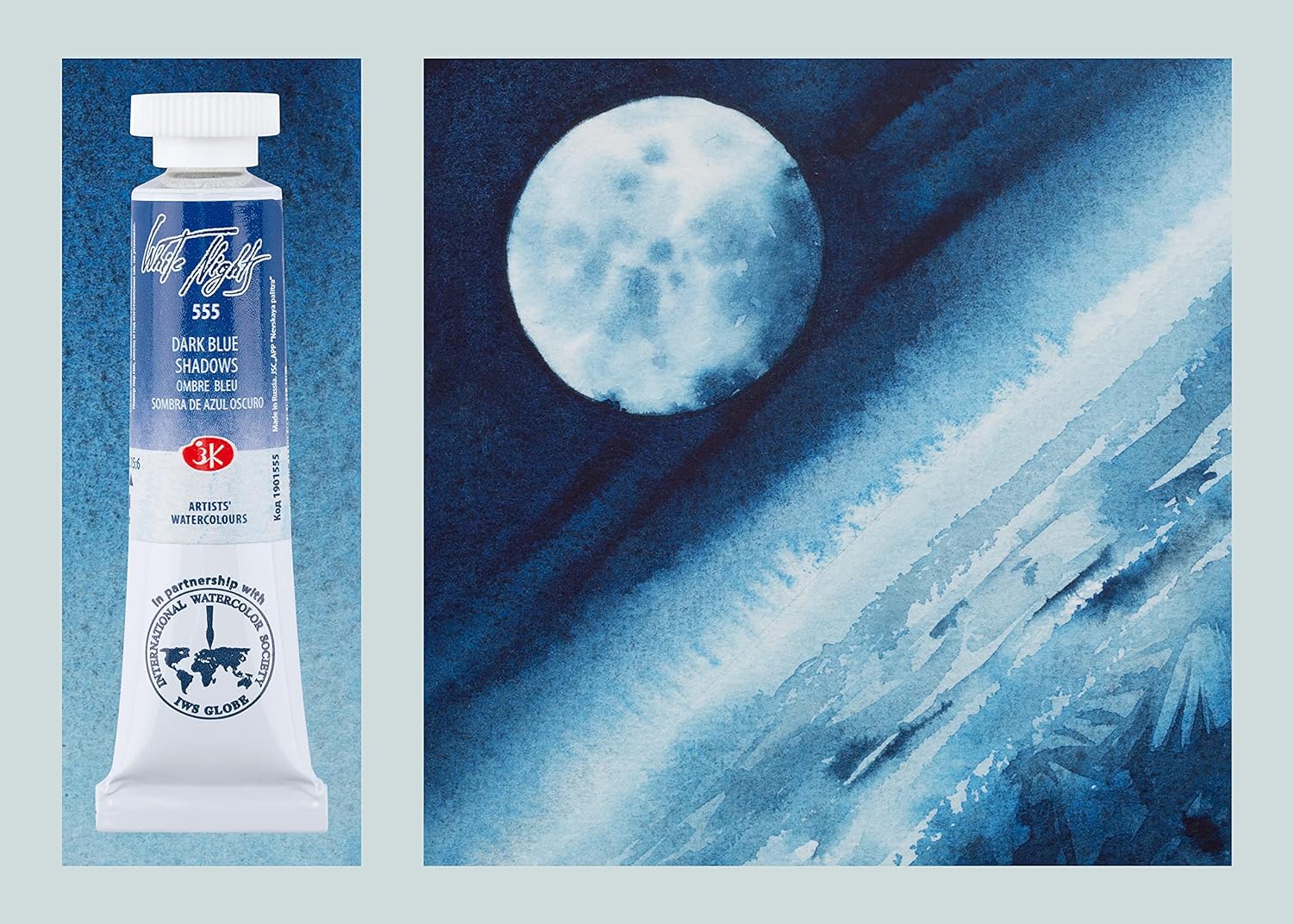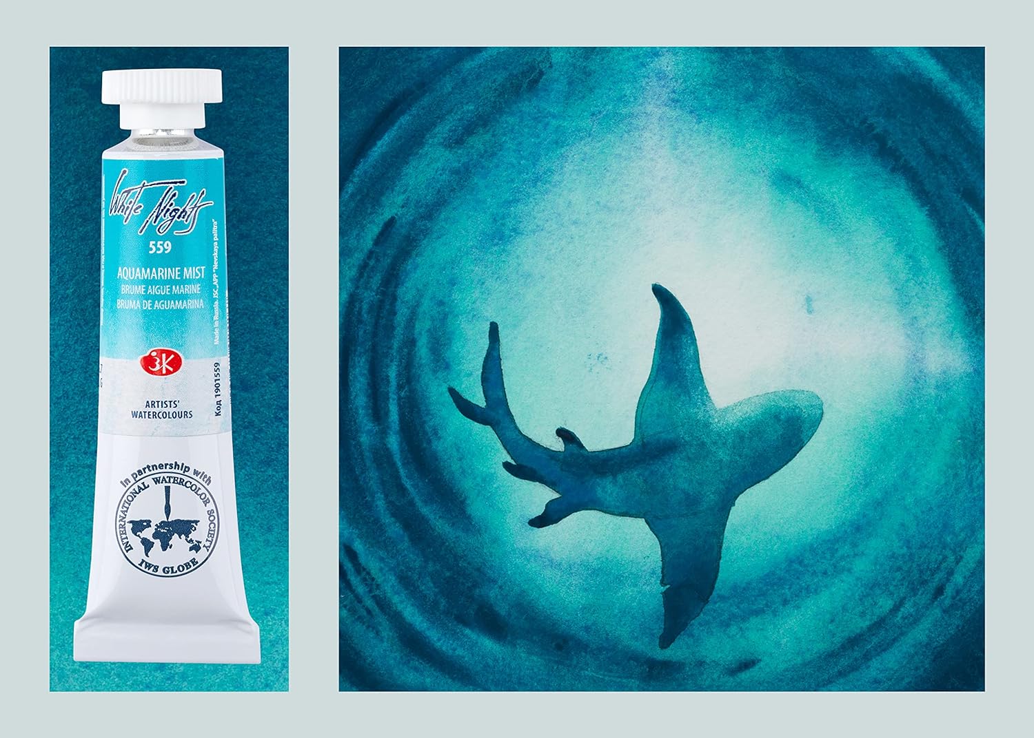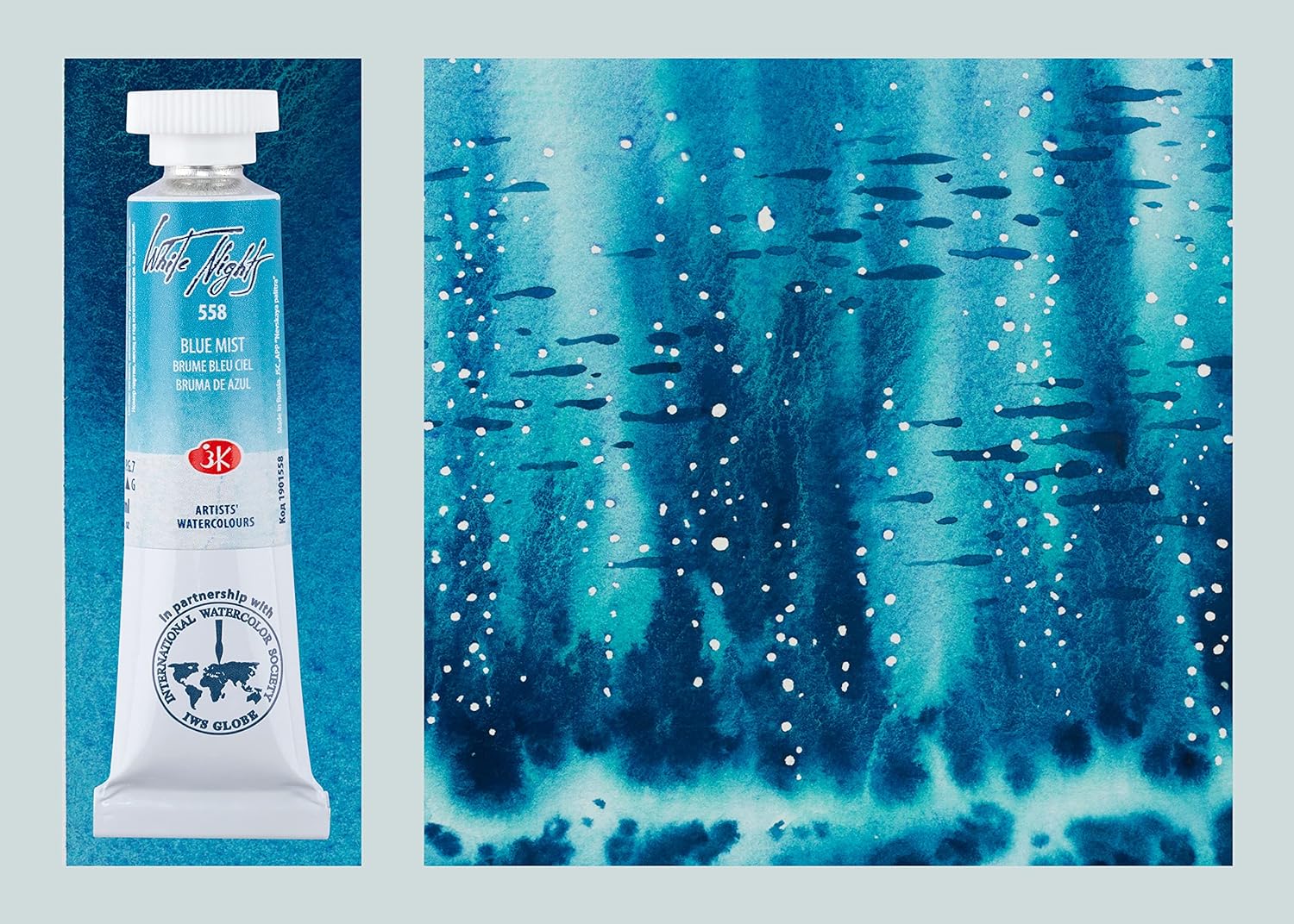 Este mini set de acuarelas White Nights Depth trae los colores Blue Mist, Aquamarine Mist y Dark Blue Shadows, todos en presentación de tubo de 10 ml.