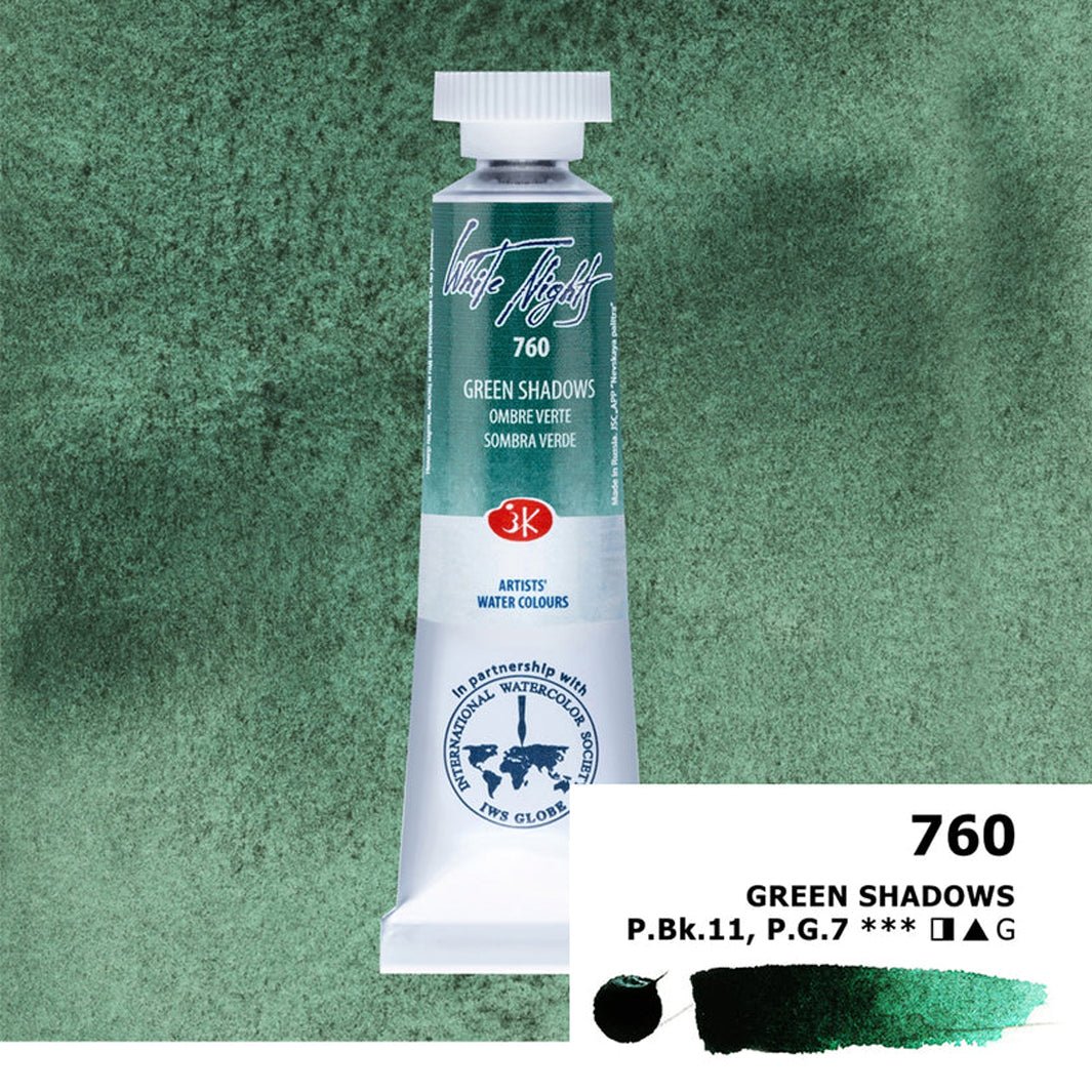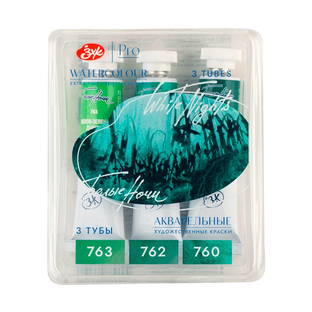 Este mini set de acuarelas White Nights Moss trae los colores 763 Yellowish Green Mist, 762 Green Mist y 760 Green Shadows, todos en presentación de tubo de 10 ml.