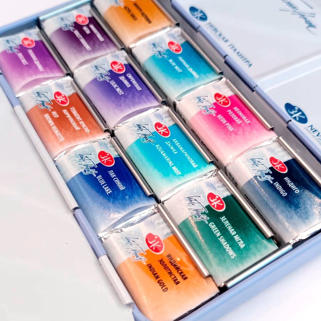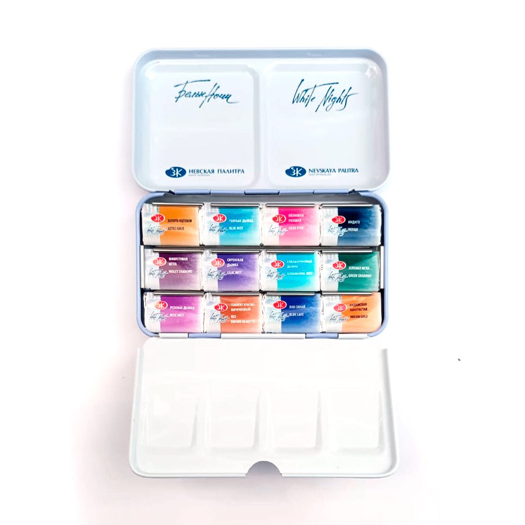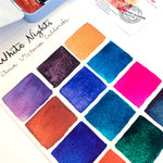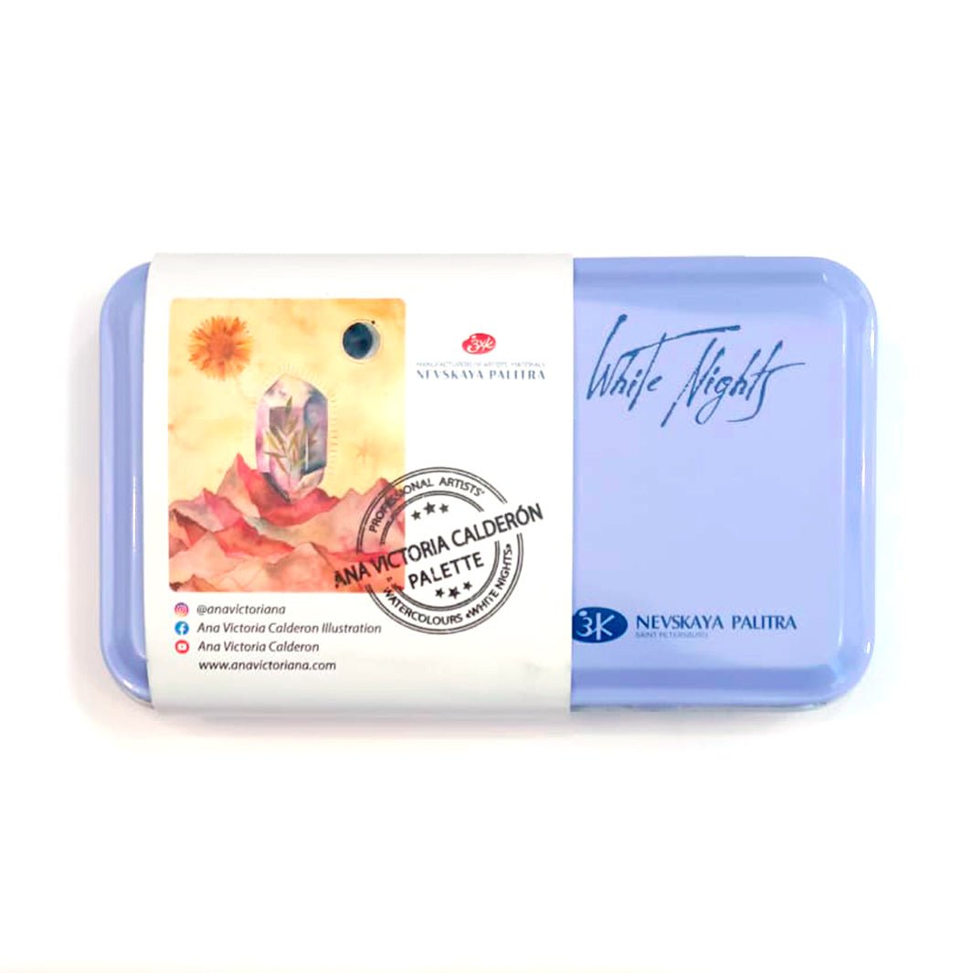 ¡Una colaboración de ensueño! Esta paleta de White Nights trae una gama seleccionada personalmente por la increíble acuarelista mexicana Ana Victoria Calderón: tonos dorados, azules, rosas, morados y mucha granulación. ¡Tienes que probarlo!