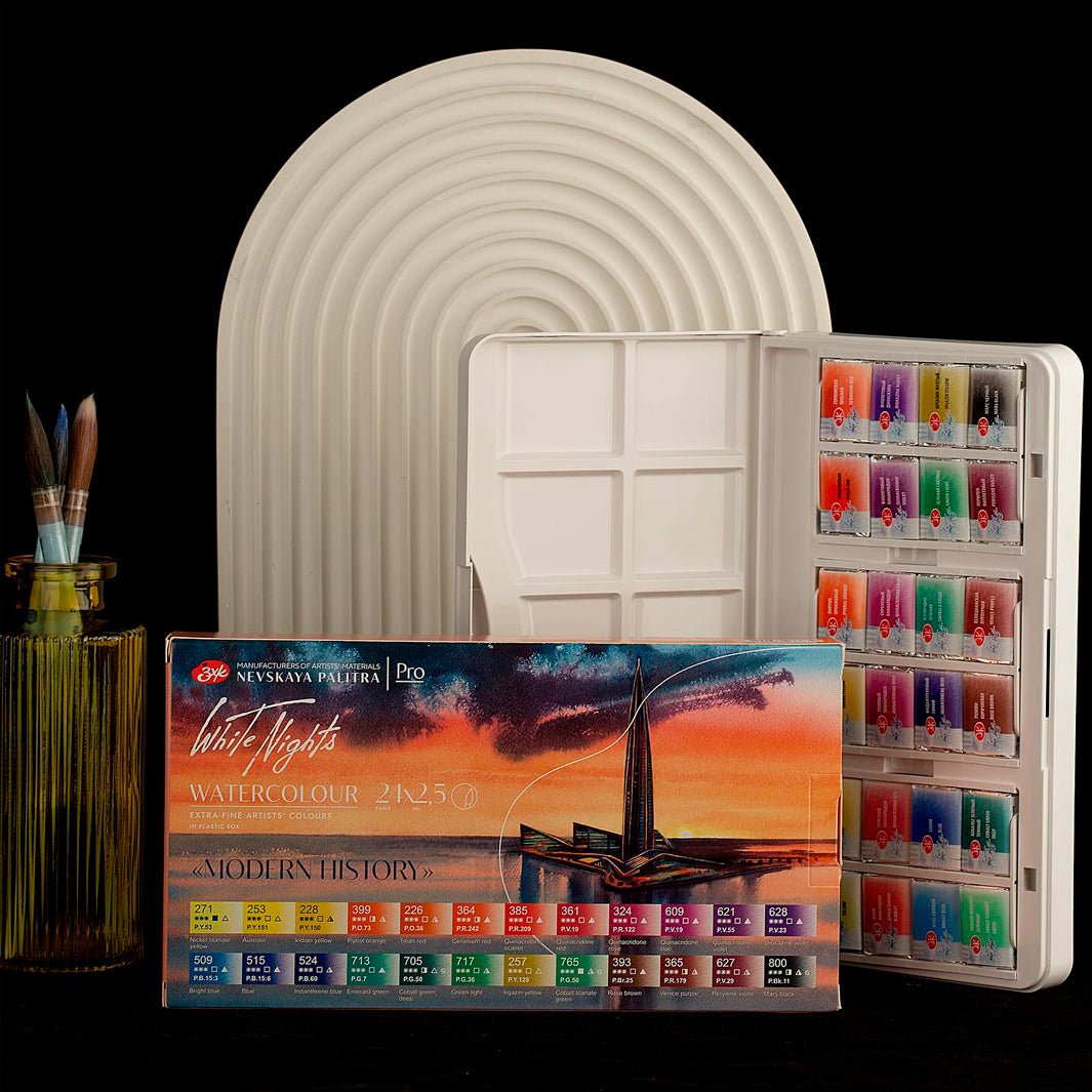 Las White Nights son acuarelas profesionales elaboradas a partir de pigmentos finamente molidos, goma arábiga y miel. Estas acuarelas te ofrecerán colores muy intensos, alta resistencia a la luz y, gracias a la miel, una fluidez divina.