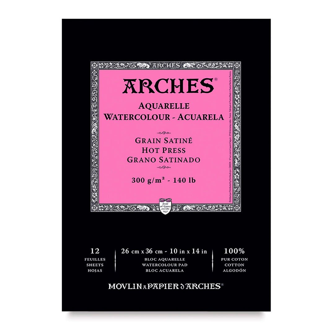El papel Arches Aquarelle satinado (prensado en caliente) es un precioso papel para acuarela elaborado con 100% algodón. Es uno de los papeles favoritos de acuarelistas de todo el mundo por su excelente calidad y desempeño; ¡te va a encantar!