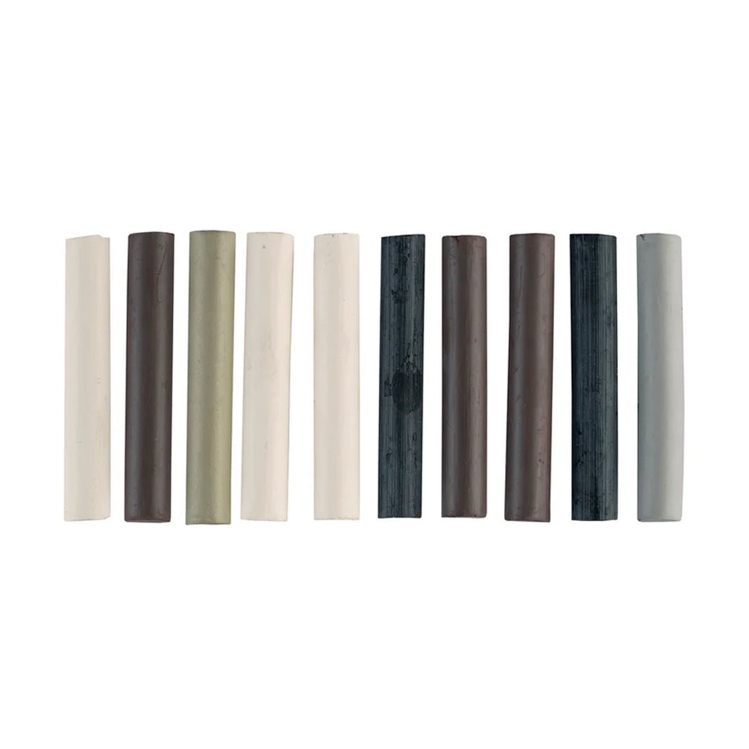 Cada barrita de carboncillo Ladoga mide 10.5 x 60 mm. Este paquete incluye 10 barras: 3 blancas, 2 negras, 3 cafés, 1 gris y 1 beige.