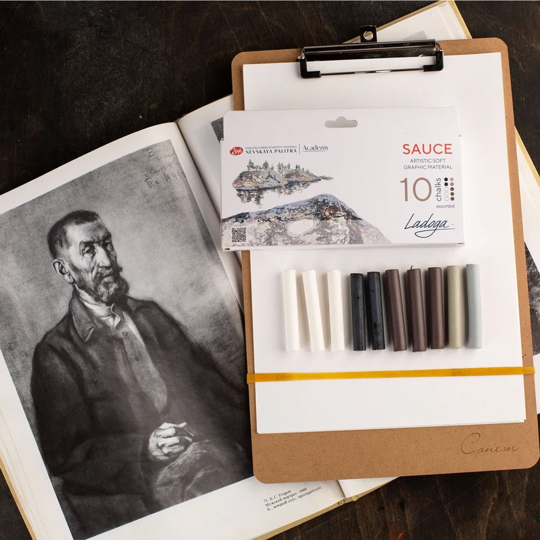 El carboncillo de Ladoga, también conocido como "salsa rusa", es un tipo de creta o pastel ultra versátil que podrás utilizar en seco o en húmedo, o mezclar ambas técnicas para conseguir una gran cantidad de efectos.