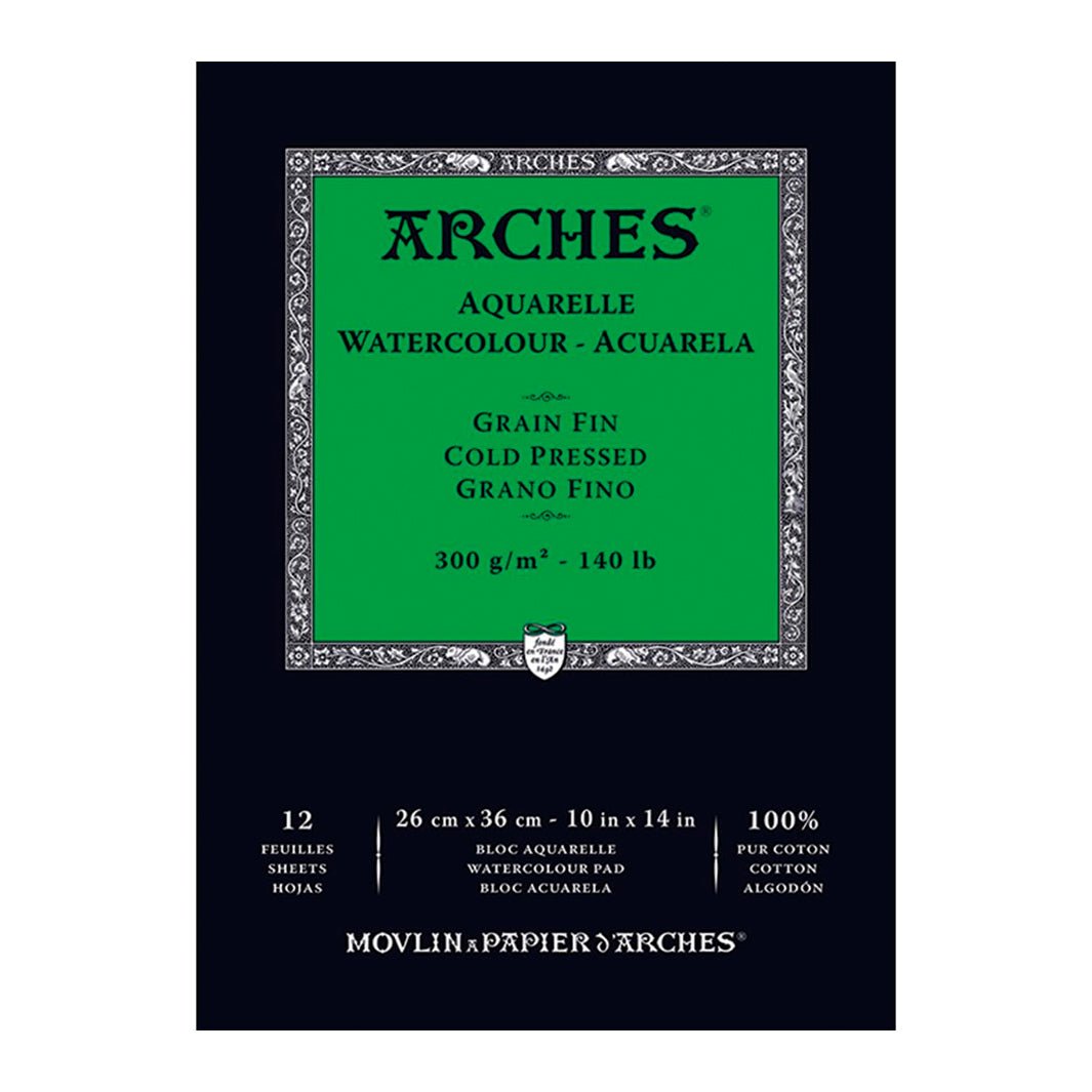 El papel Arches Aquarelle de grano fino es un precioso papel para acuarela elaborado con 100% algodón. Es uno de los papeles favoritos de acuarelistas de todo el mundo por su excelente calidad y desempeño; ¡te va a encantar!