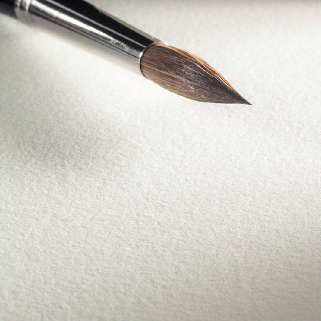 El Hahnemühle The Collection Watercolor tiene grano fino, es color blanco natural y es completamente libre de ácido. Lo que hace especial a este papel es que está diseñado para resistir todo: el masking y las cintas no lo lastimarán fácilmente, podrás borrar sin miedo a dañarlo, e incluso podrás frotar con un trapo sin que las fibras del papel se desprendan. Además, los colores se mantendrán muy vibrantes incluso después de secarse.