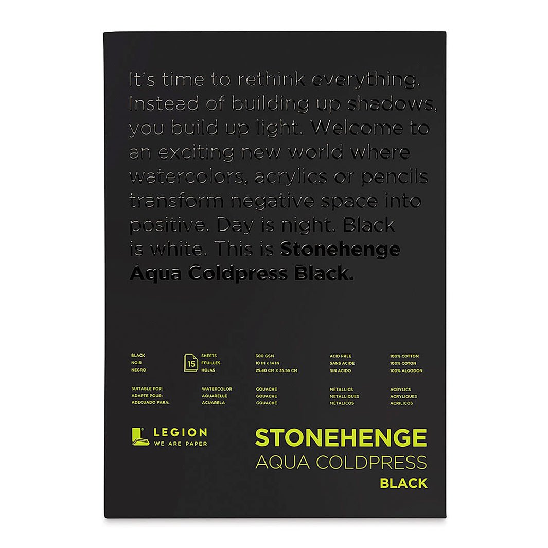 ¿Necesitas el mejor papel para acuarela color negro? Los blocks Legion Stonehenge Aqua Black son el primer papel de acuarela negro 100% algodón: estos maravillosos blocks han sido creados especialmente para acuarelas metálicas, aunque también funcionan genial con goauches, acrílicos, tintas, lápices, cretas y pasteles. ¡Tienes que probarlo!