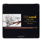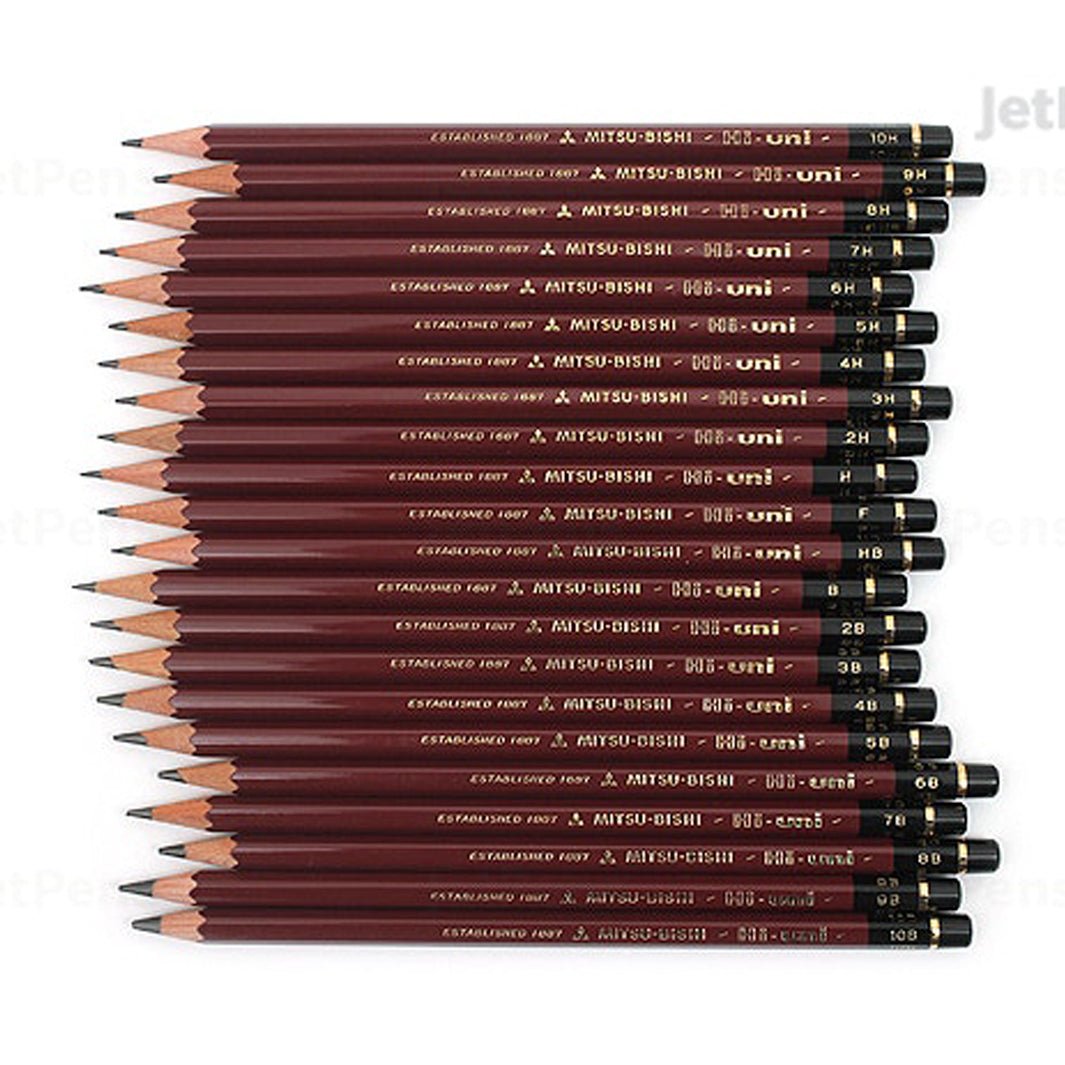 Este genial estuche incluye la gama completa de lápices Mitsubishi Hi-Uni: 22 lápices que van desde el 10B hasta el 10H.