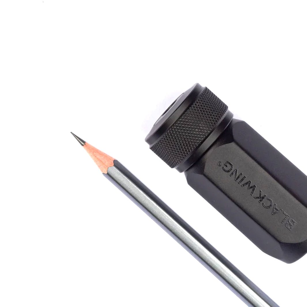El cuerpo del Blackwing One-Step Long Point está hecho de aluminio, con navajas del mejor acero alemán. El receptor de basura tiene suficiente espacio para los residuos del día y, lo mejor: ¡tenemos navajas de repuesto disponibles por separado!