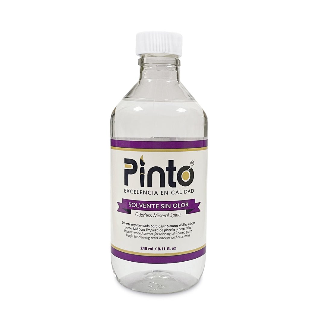 El solvente sin olor de Pinto es un medio de muy bajo olor, libre de azufre y ligeramente graso al tacto. Utilízalo como diluyente para óleo, en pinturas base solvente y como agente limpiador para pinceles, godetes, paletas y otros accesorios.