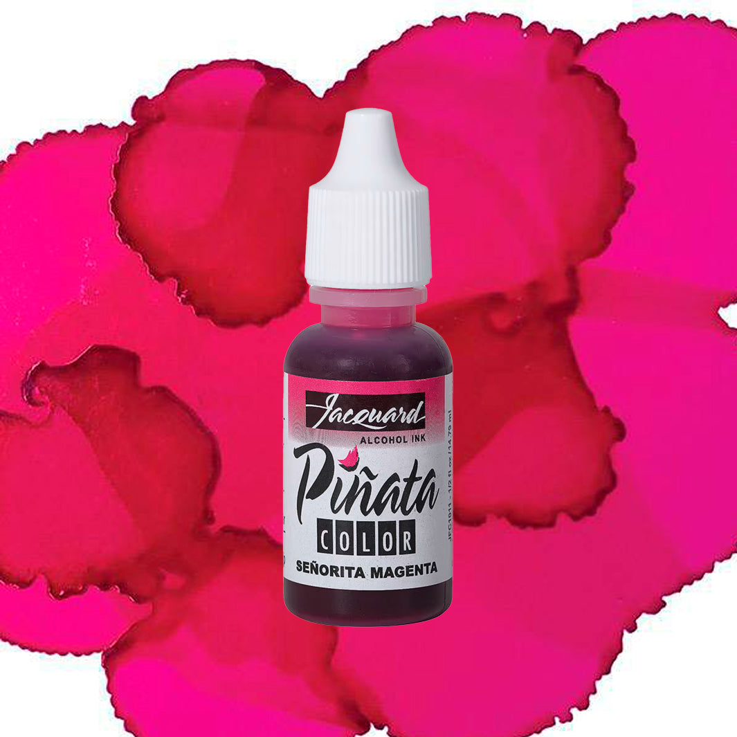 ¡Las tintas de alcohol Jacquard Piñata Colors son excelentes para casi cualquier proyecto! Estas tintas base alcohol son de colores ultra vibrantes y transparentes. Son a prueba de agua, resistentes a la luz e indelebles una vez secas, pero puedes diluirlas, reactivarlas y limpiarlas con alcohol.