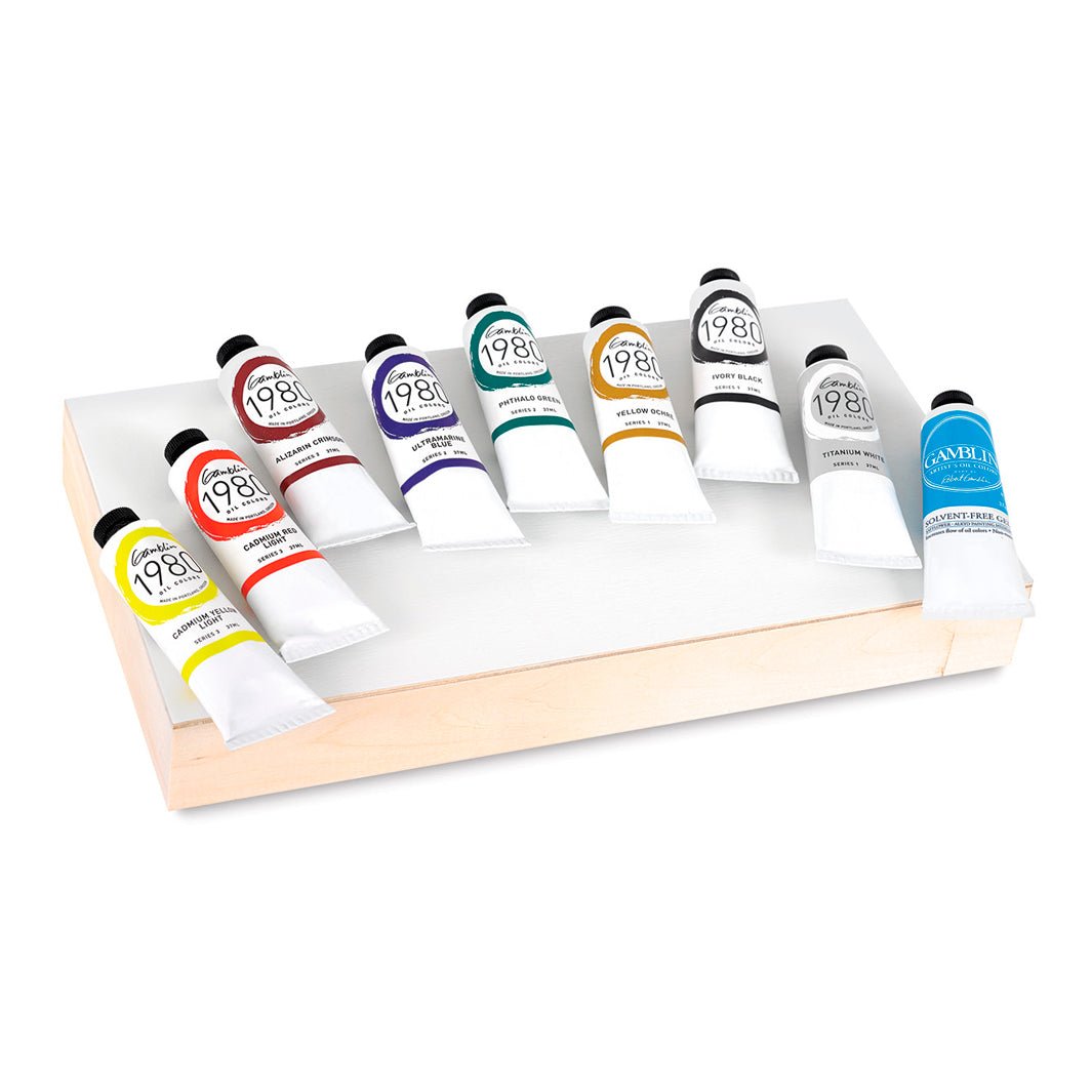 Este set introductorio de la exquisita línea Gamblin 1980 ha sido diseñado con muchísimo cuidado para adaptarse a todos los estilos de pintura. Incluye 10 piezas en total: