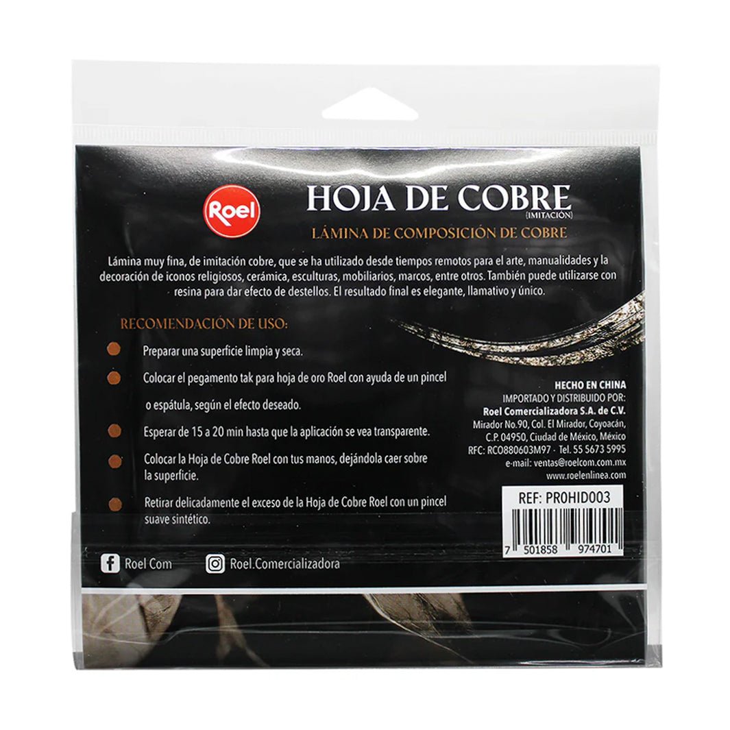 El paquete de hoja de cobre Roel trae 100 láminas de 14 x 13.5 cm.
