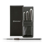 ¡Lleva tus pinceles a todas partes! Este práctico set de viaje Escoda Perla incluye 3 pinceles (#2, #6 y #10) y, para que vayan súper protegidos, vienen dentro de un estuche de cuero sintético.