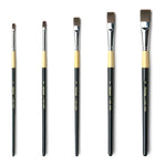 Esta serie, F-9000, está hecha de pelo sintético súper absorbente. Son pinceles planos con una capacidad de absorción muy buena, un pelo flexible y una borde bien definido que te permitirá hacer trazos delgados. ¡Utilízalos con acuarela, acrílico, u óleo!