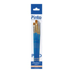 El set de pinceles PTD de Pinto incluye 4 pinceles de cerdas sintéticas de taklón dorado: 2 pinceles planos #6 y #12; 2 pinceles redondos #1 y #3.