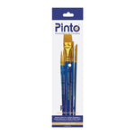 El set de pinceles PTV de Pinto incluye 5 pinceles de cerdas sintéticas de taklón dorado: plano de 3/4", plano #6, redondo #4, angular de 1/4" y short liner #2.