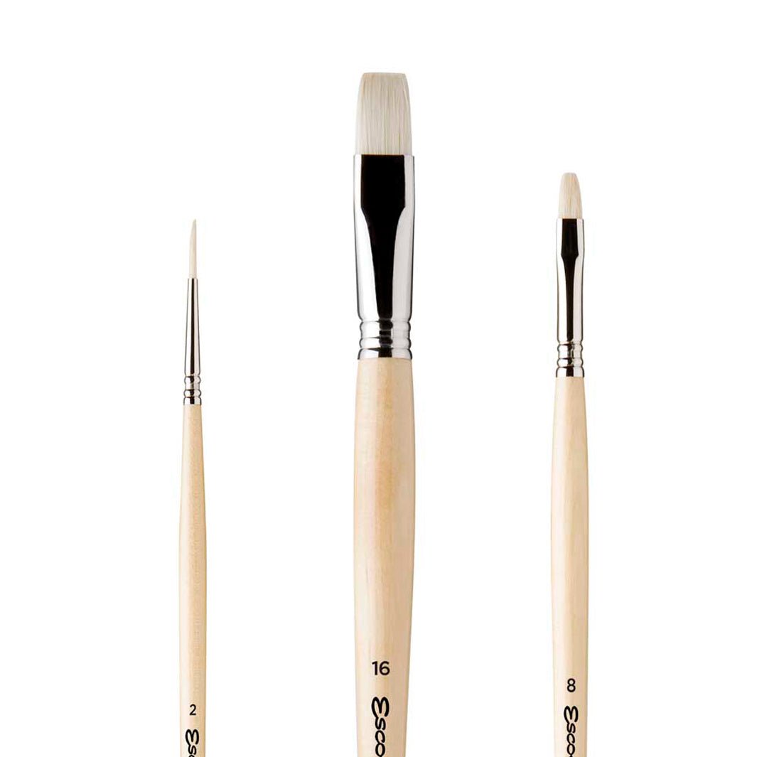 Los Escoda Clásico son pinceles fabricados con cerda extraída del cerdo chino Chunking, de color blanco. Tiene una firmeza natural que responde perfectamente para la técnica del óleo y del acrílico pesado.