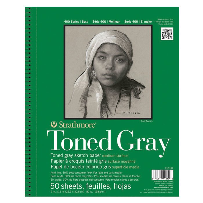 El block Strathmore 400 Toned Gray está elaborado a partir de papel Strathmore reciclado de alta calidad y completamente libre de ácido. Su color gris neutro lo hace excelente para crear tanto luces intensas como sombras muy oscuras, ¡te va a encantar!