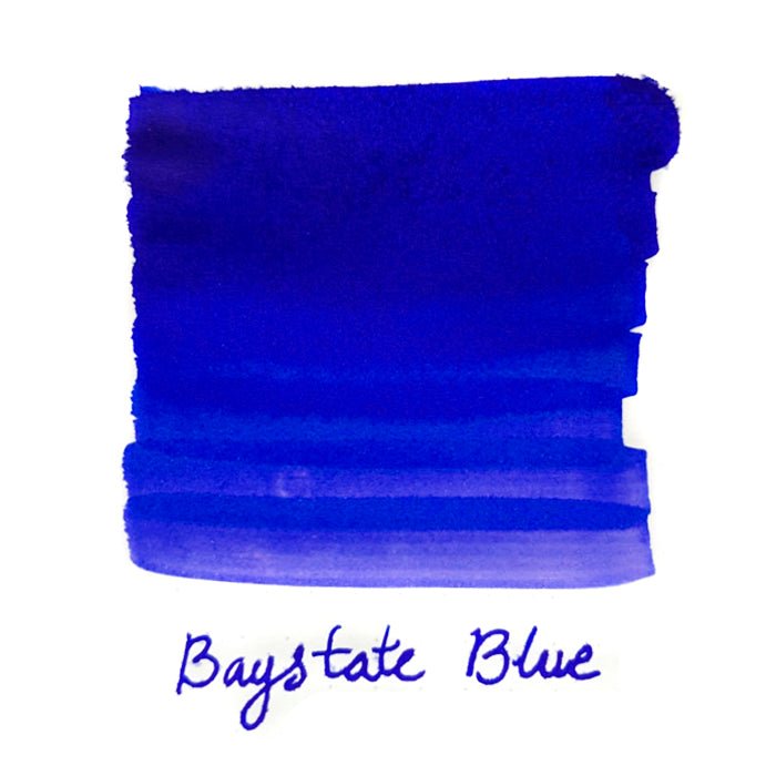 La tinta Baystate Blue de Noodler's Ink es una tinta formulada especialmente para usarse en plumas fuente. Es de secado medio y color azul intenso. Es parte de la colección Baystate, una línea de tintas de colores muy vivos inspirada en una serie de tintas estilo colonial de los 1940s.