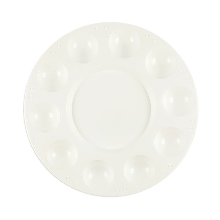 Este godete redondo es de plástico rígido. Trae 10 cavidades redondas de 3cm de diámetro y 1.5 cm de profundidad, más un espacio central para mezclas.