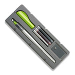 Cada estuche incluye una pluma Pilot Parallel de 3.8mm, dos cartuchos de tinta (negro y rojo), un kit para limpieza, e instrucciones de uso. Otros colores de tinta, convertidor de bomba y tintas líquidas compatibles están disponibles por separado.