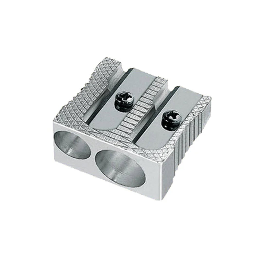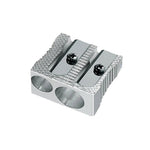 Este sacapuntas está hecho de magnesio y dos entradas: un de 8mm de diámetro, perfecta para lápices de grafito, lápices de colores y lápices acuarelables; y otra de 11mm perfecta para lápices anchos y crayones.