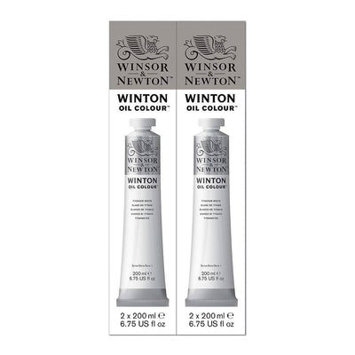 Este paquete incluye dos tubos de óleo Winton Blanco de Titanio de 200 ml cada uno, para un total de 400 ml de pintura. ¡Perfecto para tus fondos!