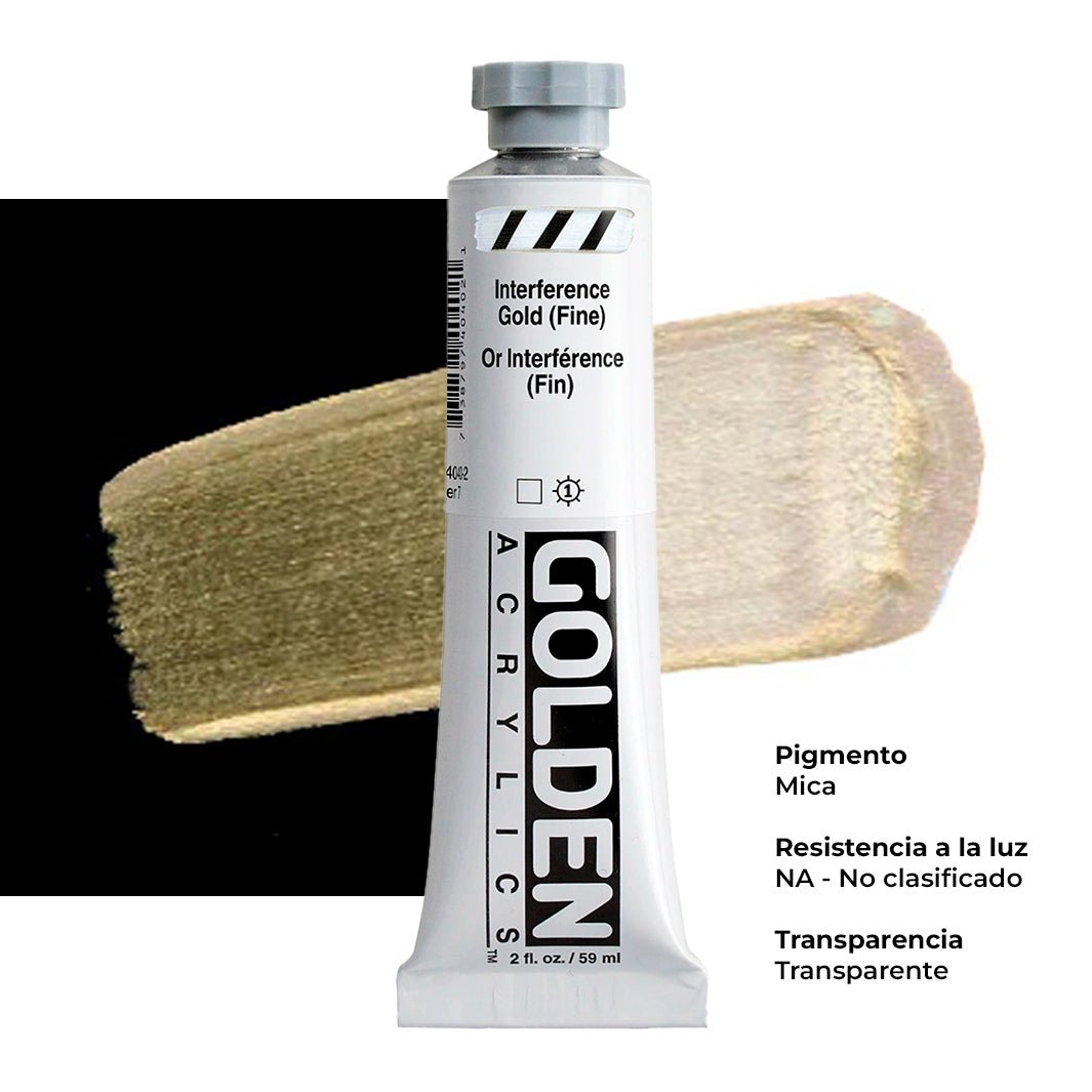 Los acrílicos Golden Heavy Body en tonos metálicos e interferencia tienen la excelente calidad típica de Golden: una consistencia espesa y cremosa, se deslizan como mantequilla mientras pintas y con una pigmentación no tiene igual.