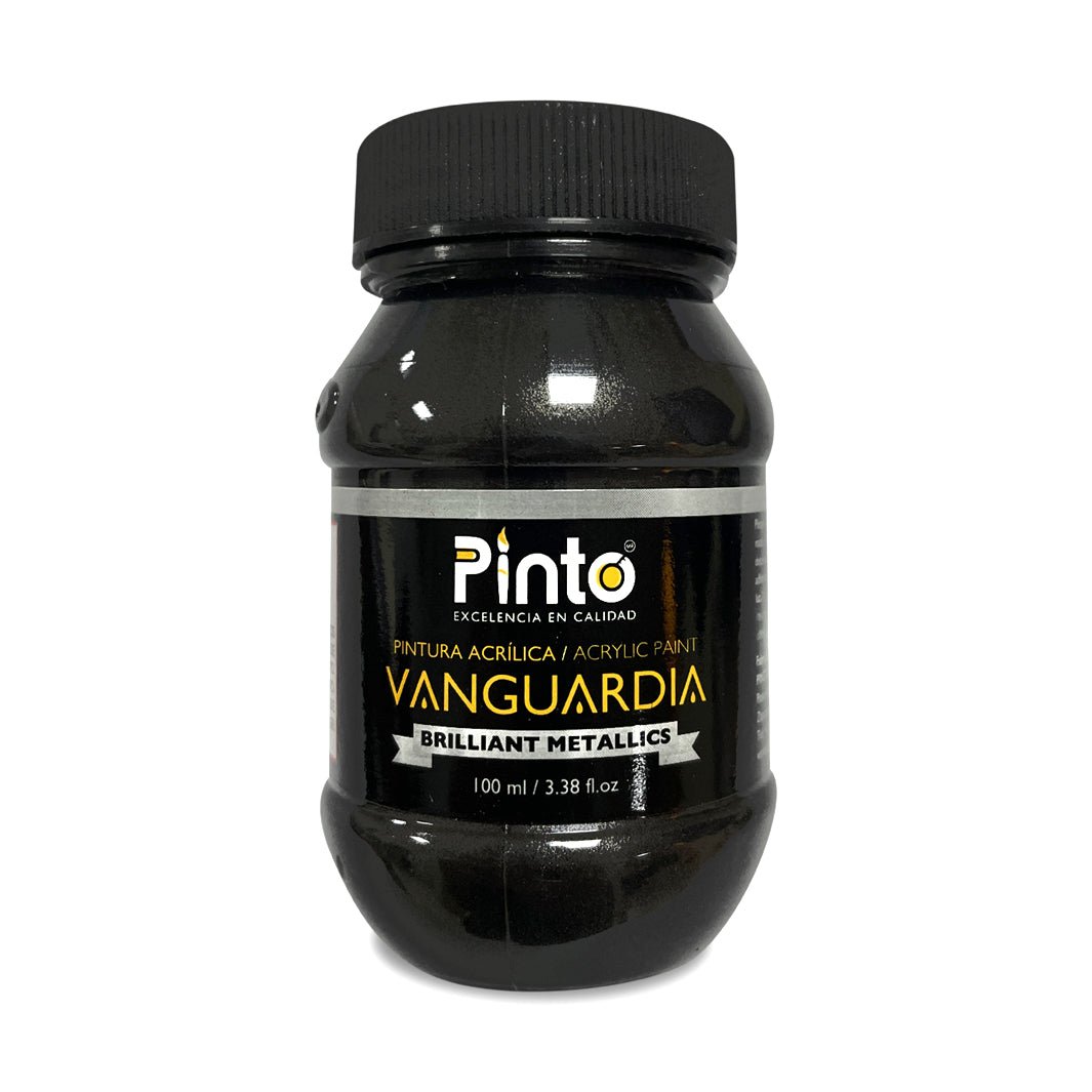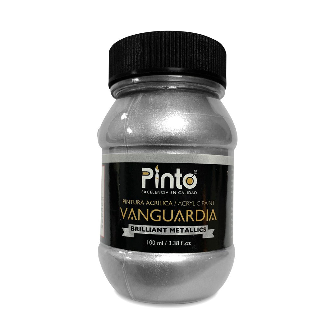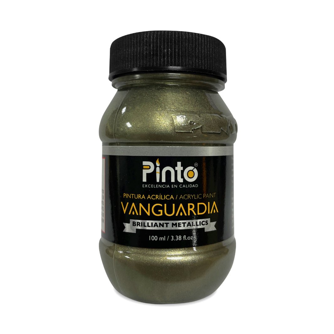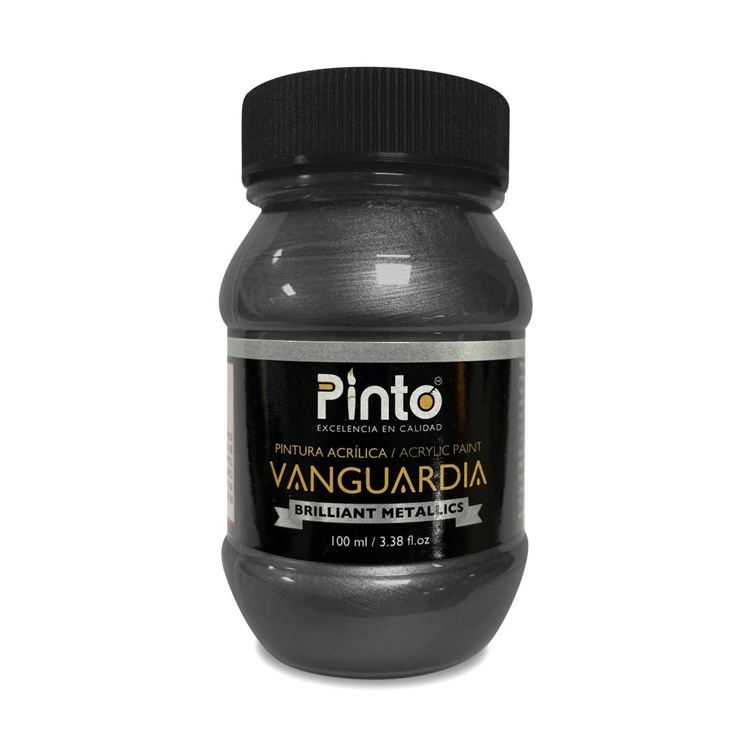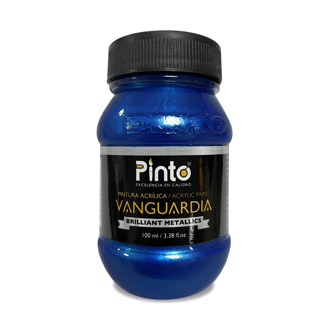 Los acrílicos metálicos Pinto Vanguardia está hechos a partir de pigmentos finamente molidos, resina acrílica, agua destilada y otros aditivos que dan como resultado una pintura acrílica mate con una viscosidad media y uniforme. Gracias a su concentración de pigmentos, los acrílicos Pinto son sumamente cubrientes; los colores son vibrantes y poseen un alto grado de resistencia a la luz.