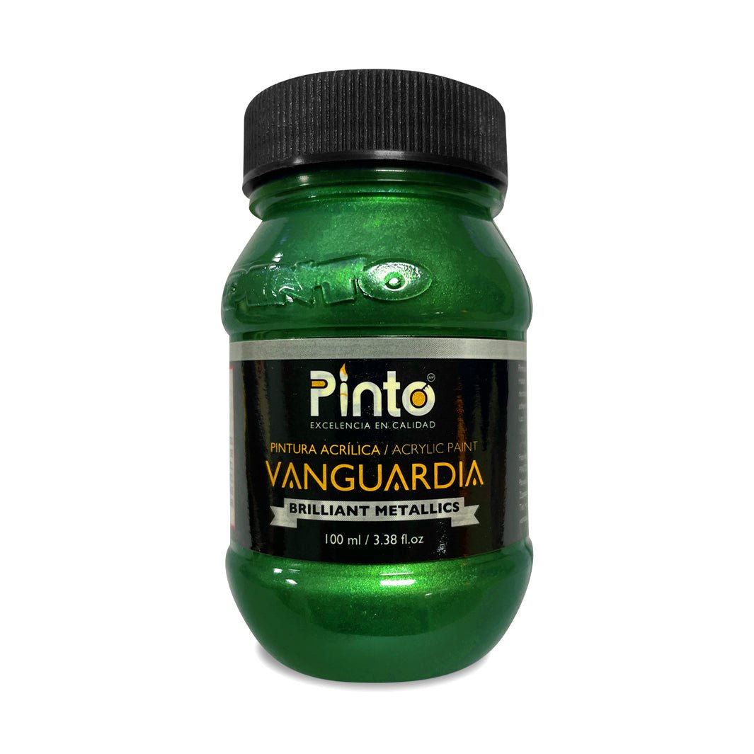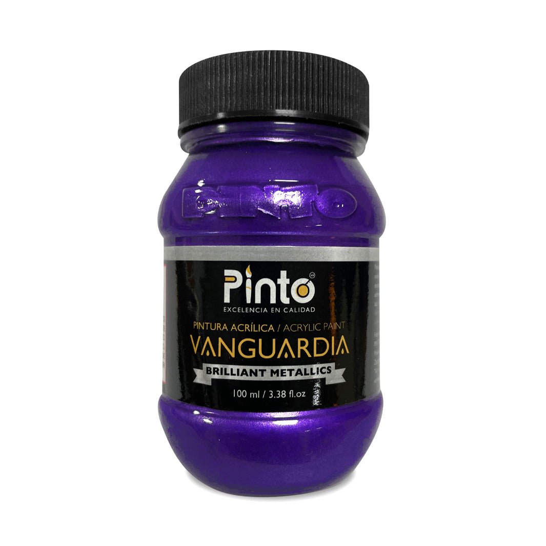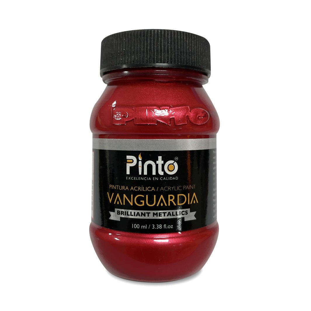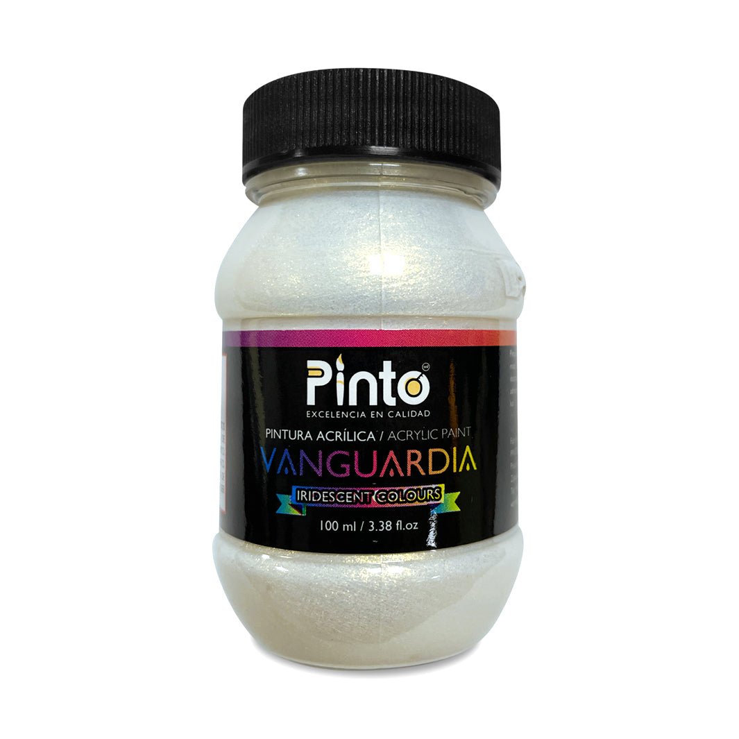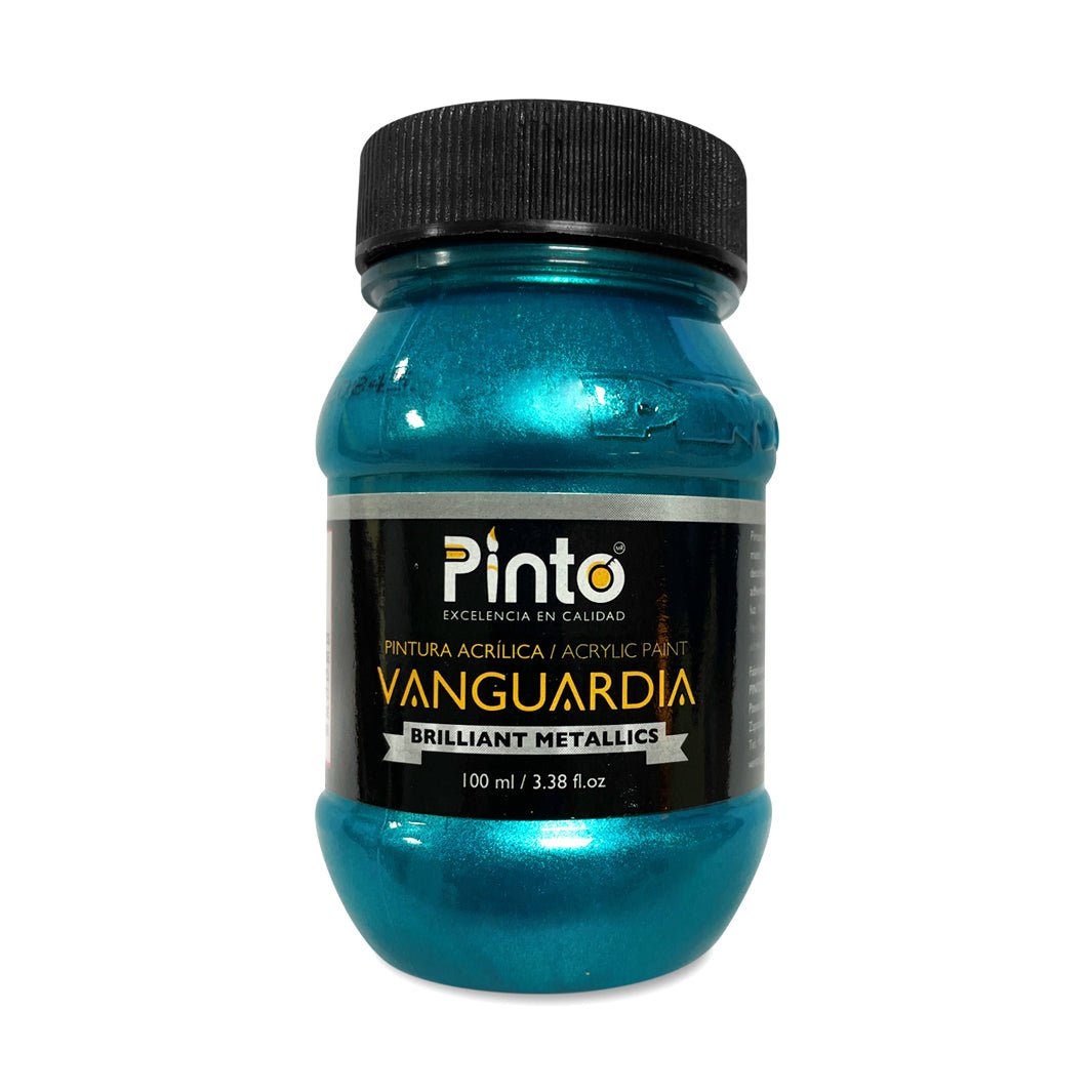 Los acrílicos metálicos Pinto Vanguardia está hechos a partir de pigmentos finamente molidos, resina acrílica, agua destilada y otros aditivos que dan como resultado una pintura acrílica mate con una viscosidad media y uniforme. Gracias a su concentración de pigmentos, los acrílicos Pinto son sumamente cubrientes; los colores son vibrantes y poseen un alto grado de resistencia a la luz.