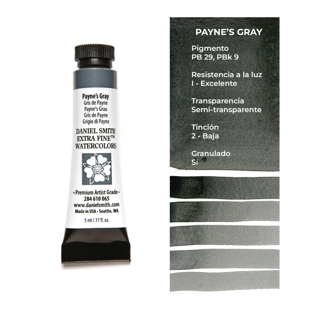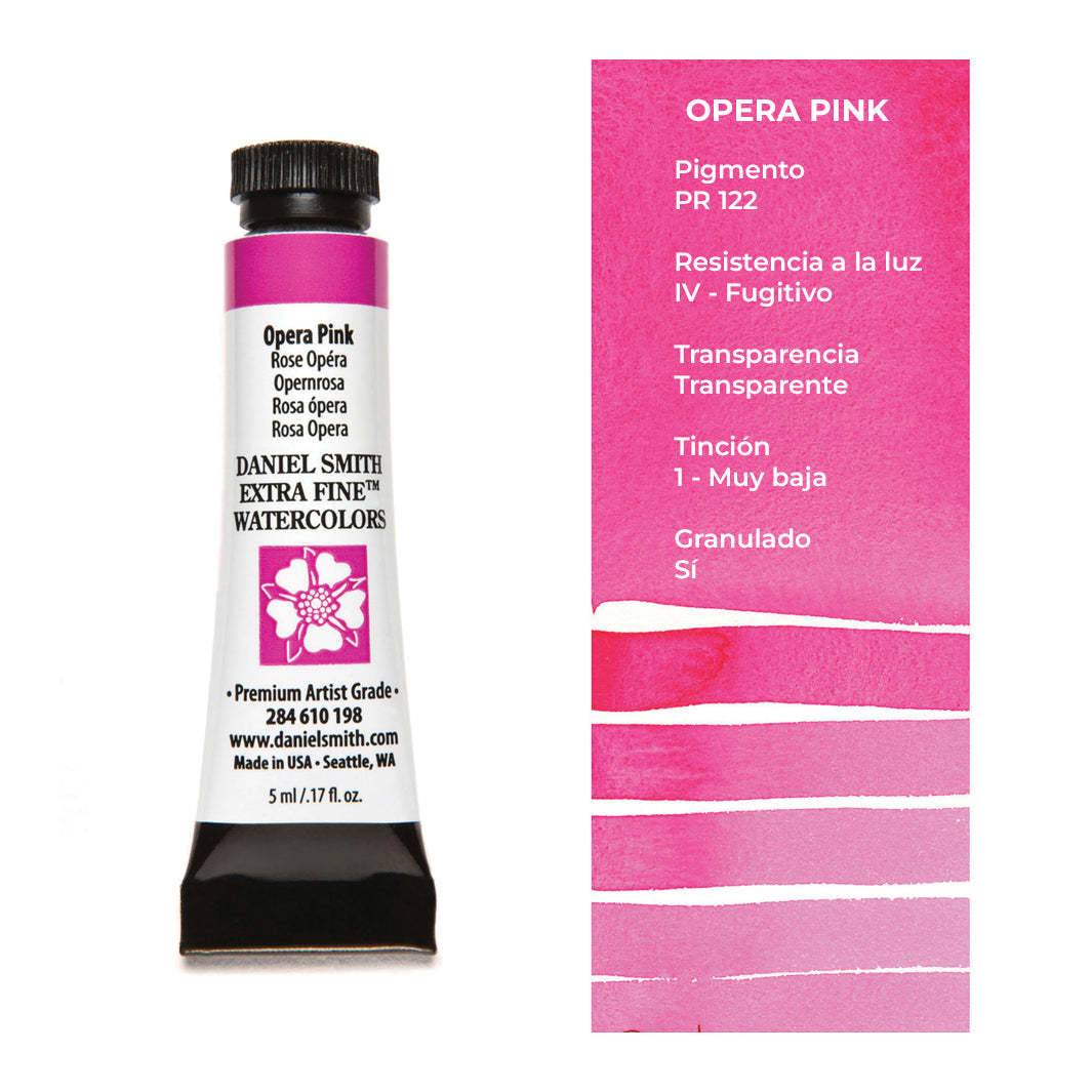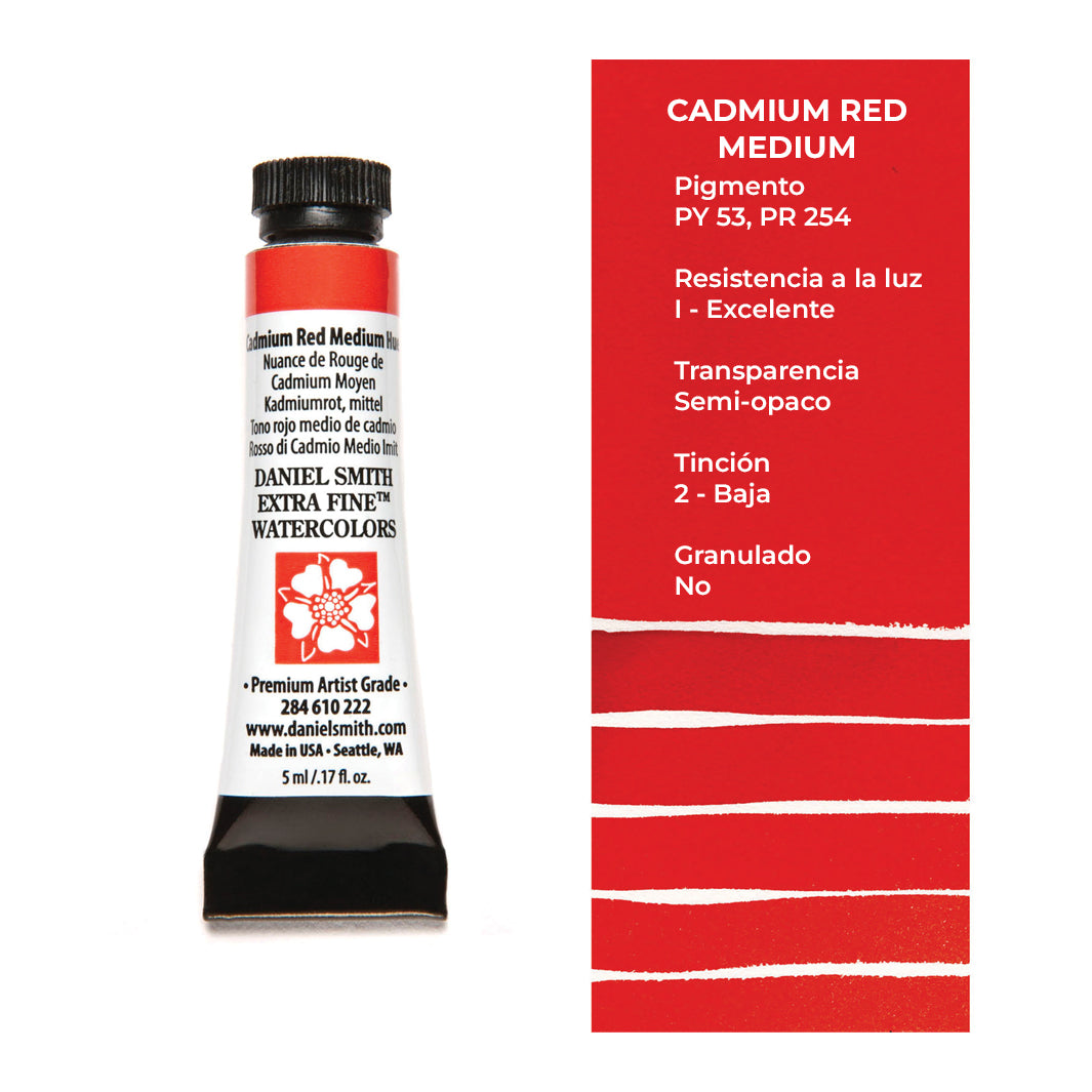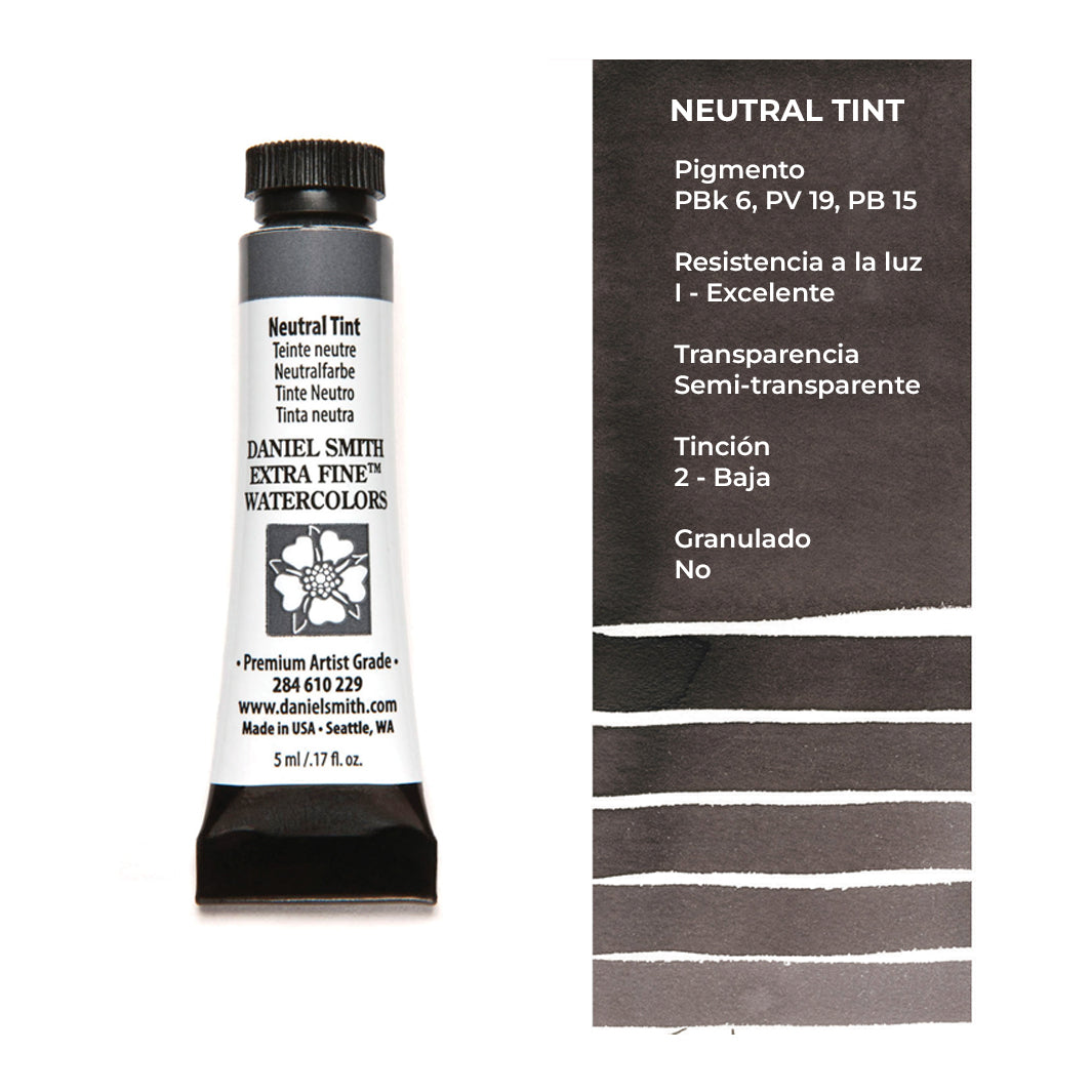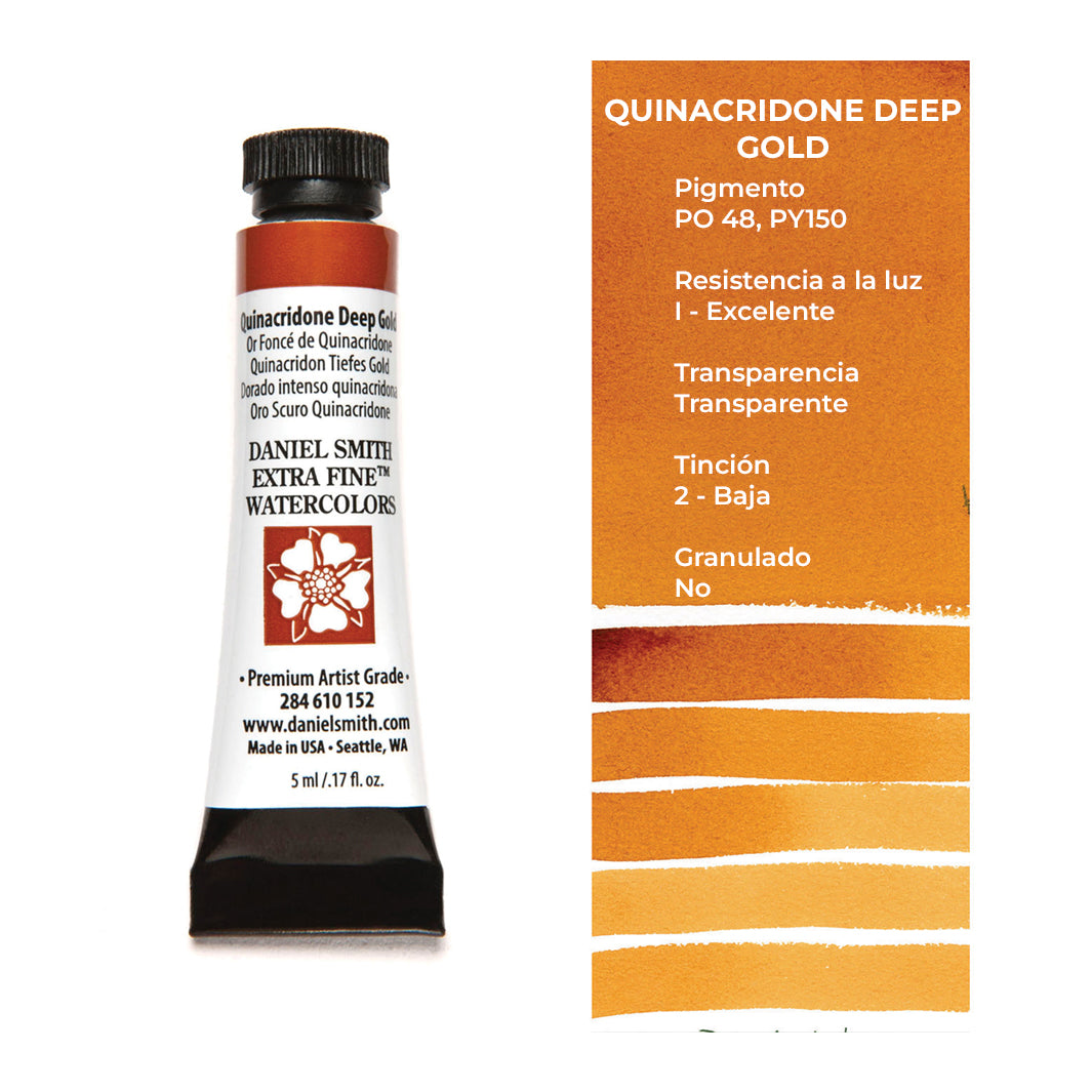 Cada tubo individual de acuarela Daniel Smith trae 5 ml de pintura; las tenemos disponibles en 100 colores, incluyendo una selección de cadmios y cobaltos verdaderos, los populares Opera Pink y Neutral Tint, y los magníficos quinacridonas que solo Daniel Smith ofrece.