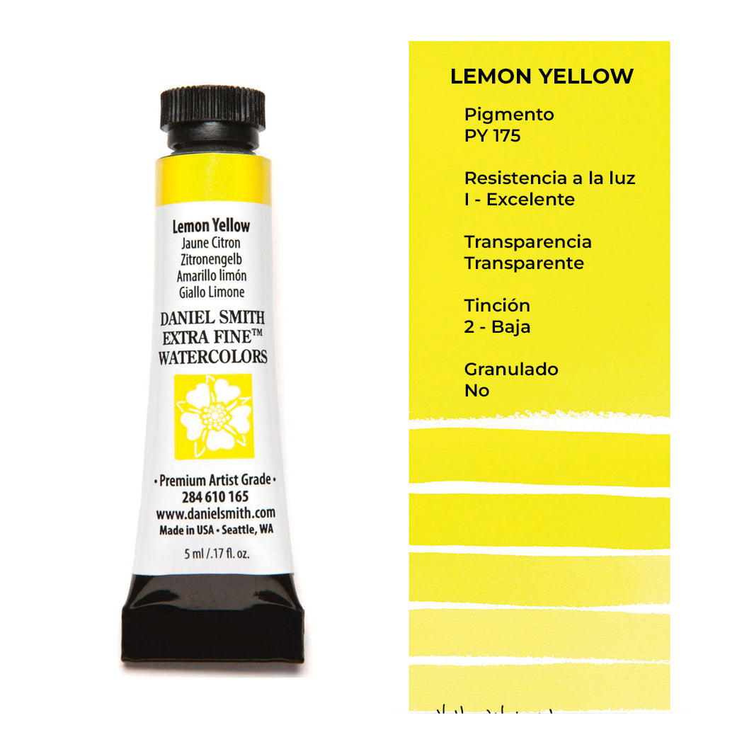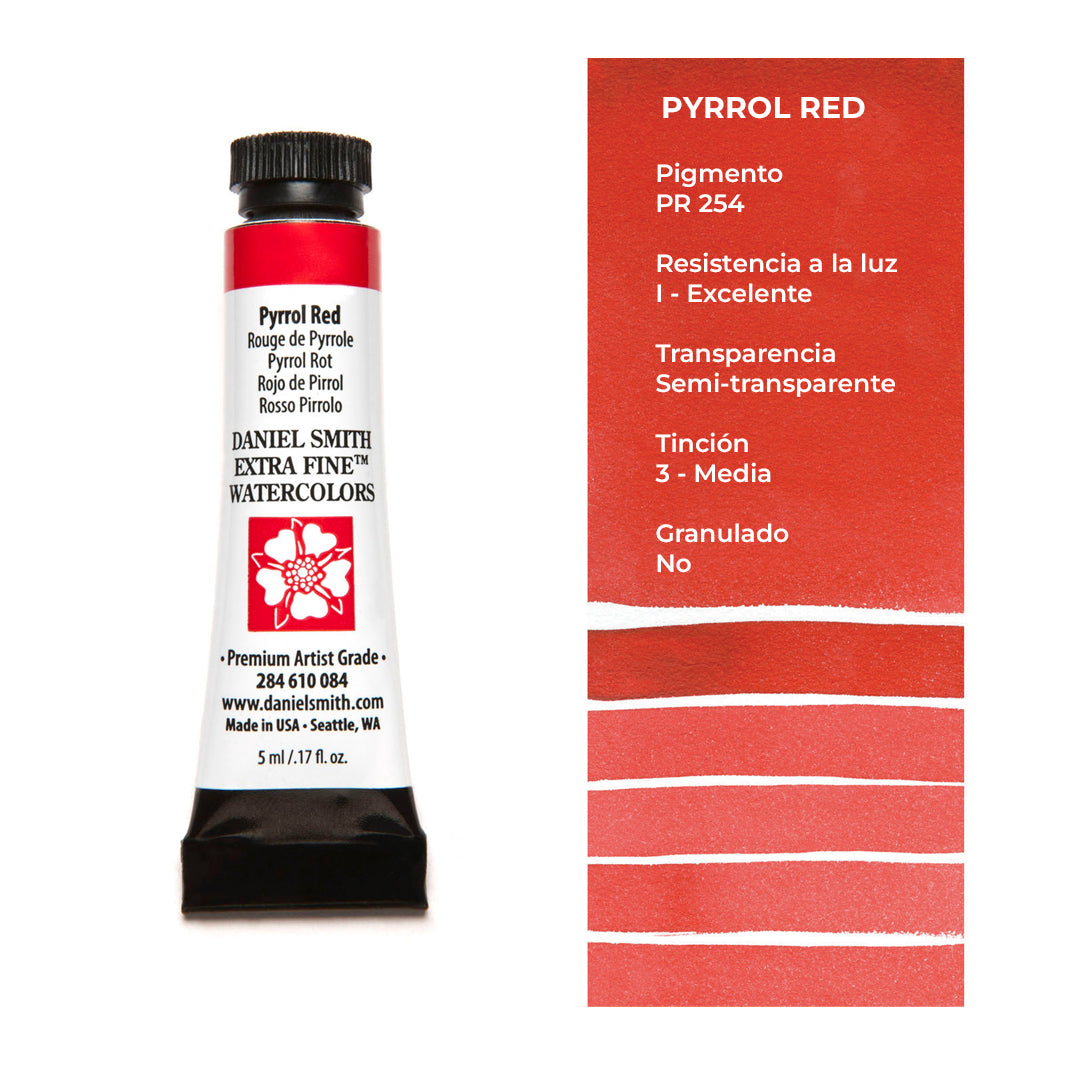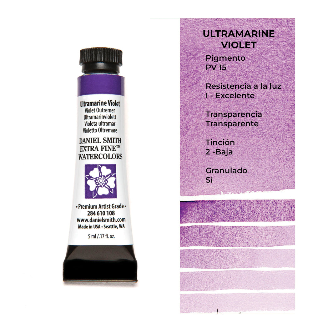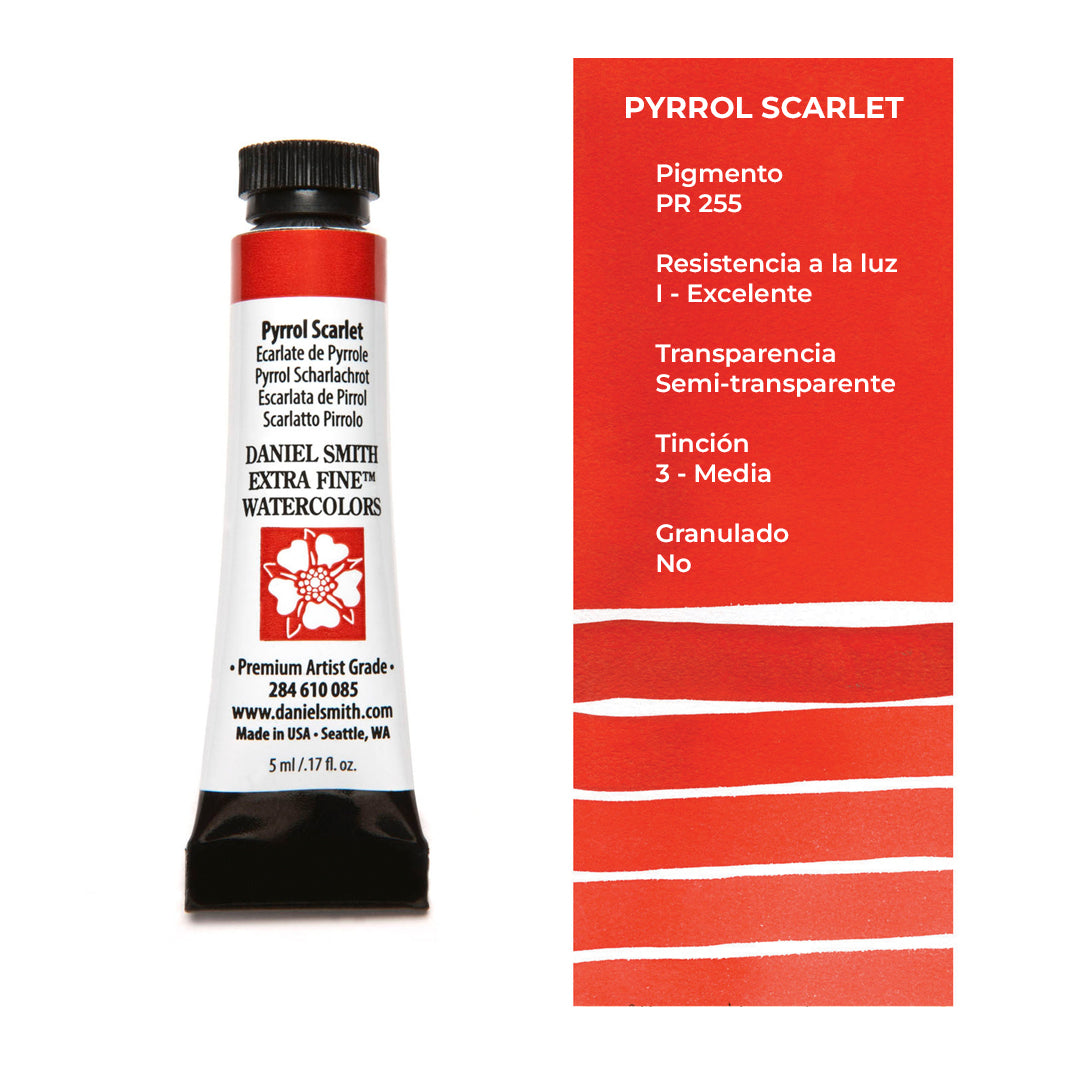 Cada tubo individual de acuarela Daniel Smith trae 5 ml de pintura; las tenemos disponibles en 100 colores, incluyendo una selección de cadmios y cobaltos verdaderos, los populares Opera Pink y Neutral Tint, y los magníficos quinacridonas que solo Daniel Smith ofrece.