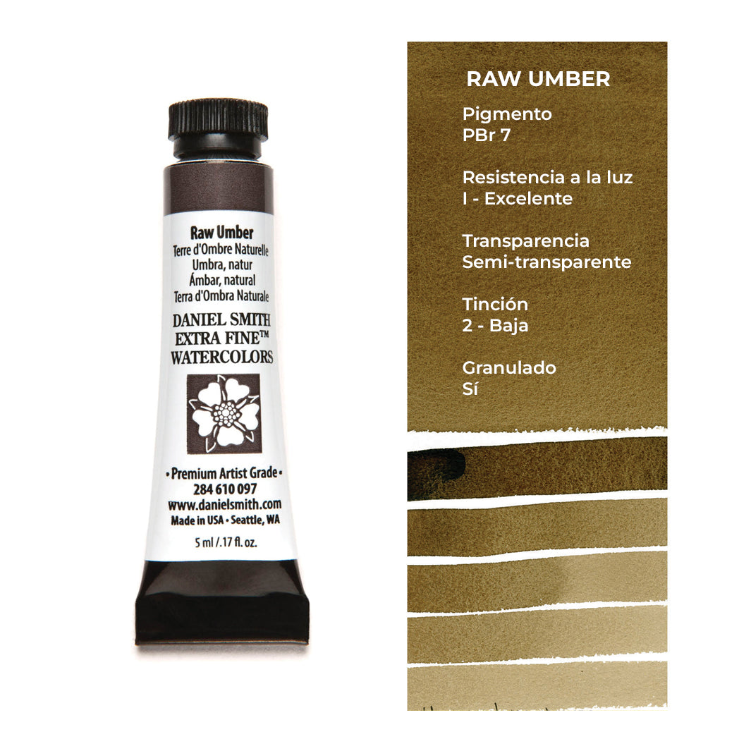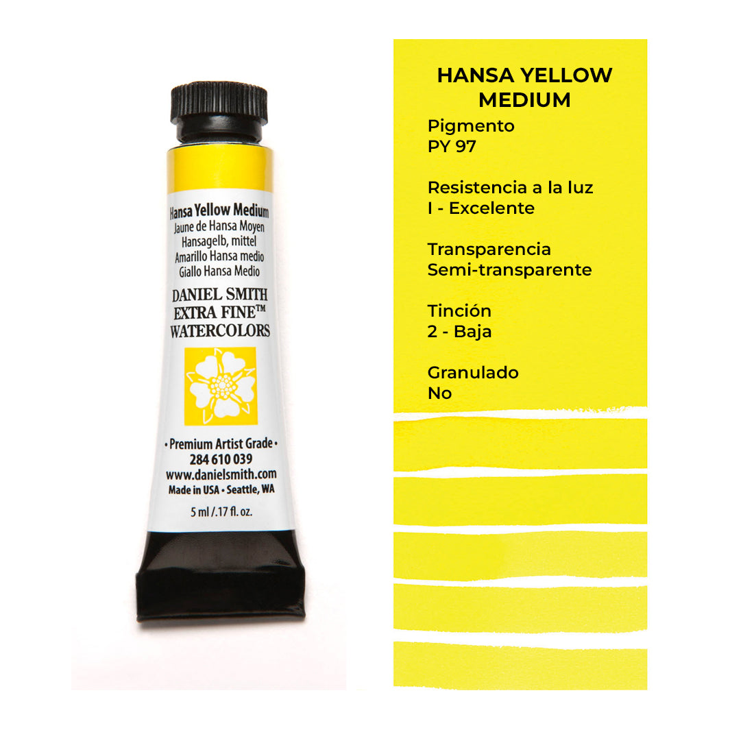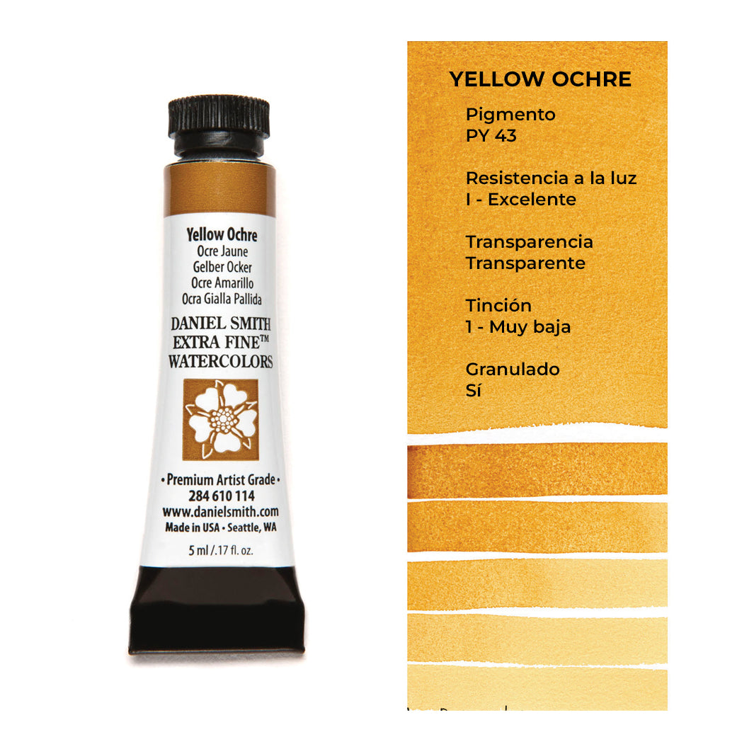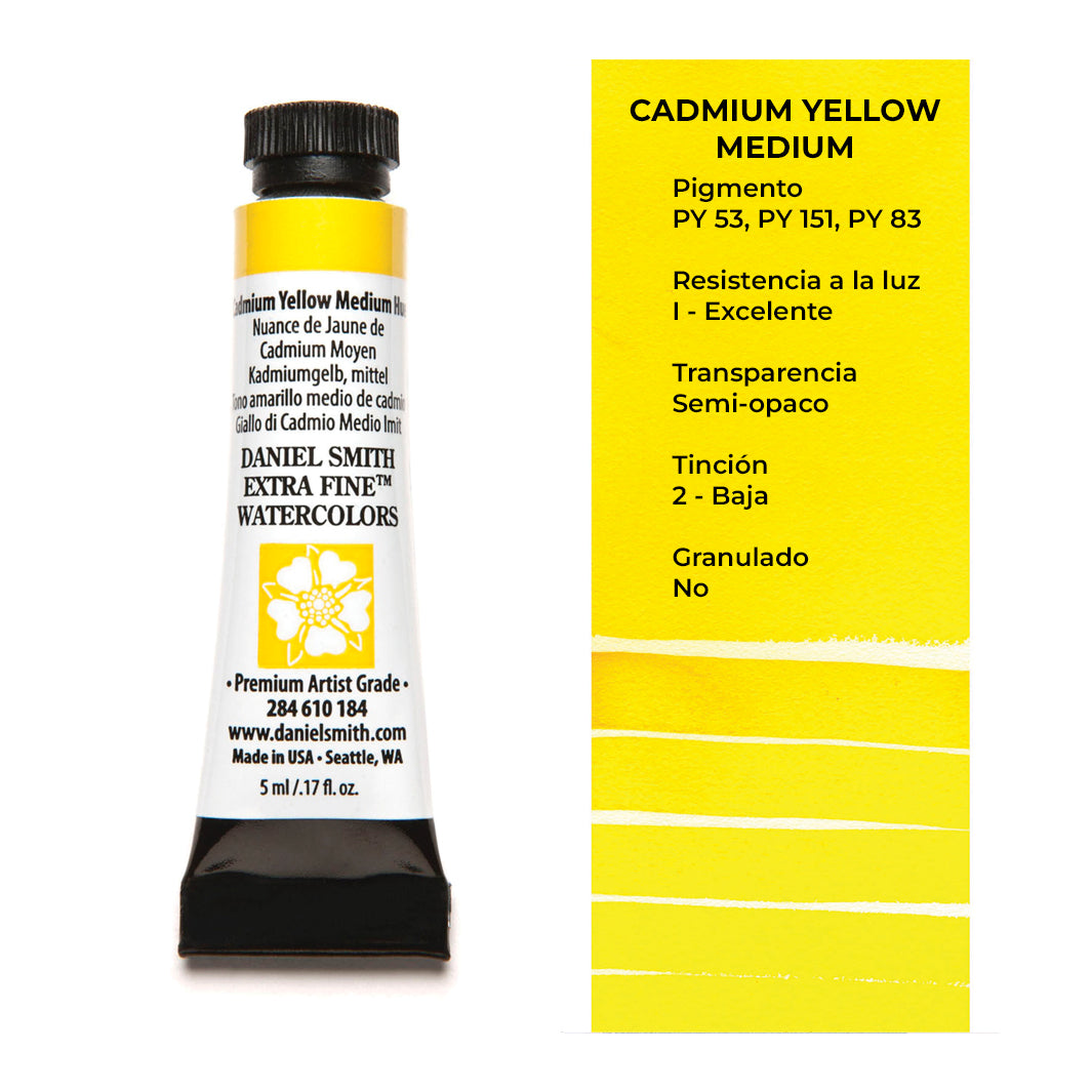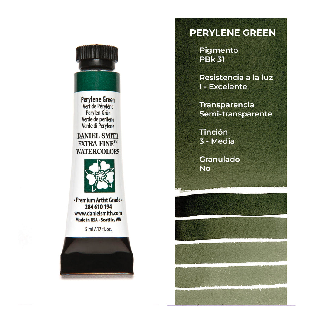 Cada tubo individual de acuarela Daniel Smith trae 5 ml de pintura; las tenemos disponibles en 100 colores, incluyendo una selección de cadmios y cobaltos verdaderos, los populares Opera Pink y Neutral Tint, y los magníficos quinacridonas que solo Daniel Smith ofrece.
