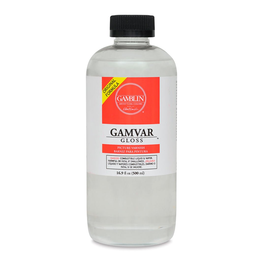 Esta es la versión Gloss (con brillo) del barniz Gamvar. Es claro como el agua y se mantiene claro como el agua incluso después de ser aplicado. Úsalo sobre óleos y acrílicos para disfrutar de su magia.