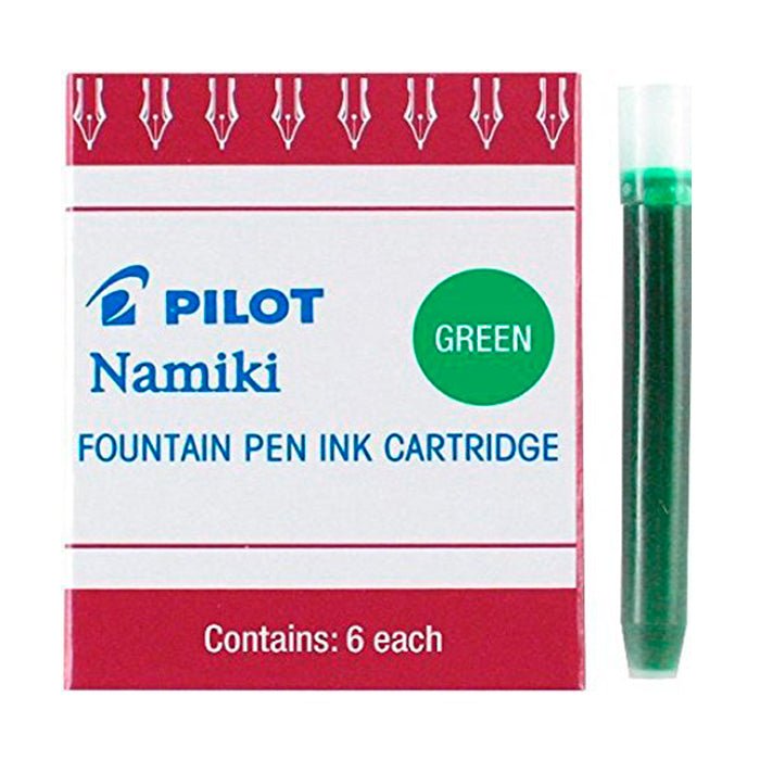Cada cajita incluye 6 cartuchos de tinta para pluma fuente Pilot Namiki, todos del mismo color. Estos cartuchos están disponibles en 4 colores diferentes: morado, rojo, sepia y verde.