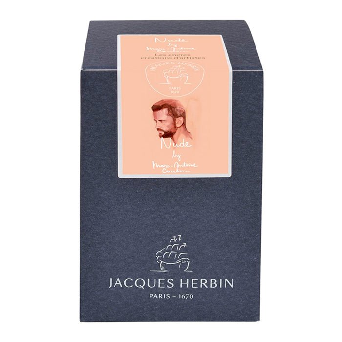 Esta es la tinta Herbin Nude, la primera de la colección Artist Creations Inks. Se trata de una tinta para pluma fuente de un color beige claro con subtonos rosas cálidos, formulada especialmente para ser utilizada como un color base para algunos tonos de piel.